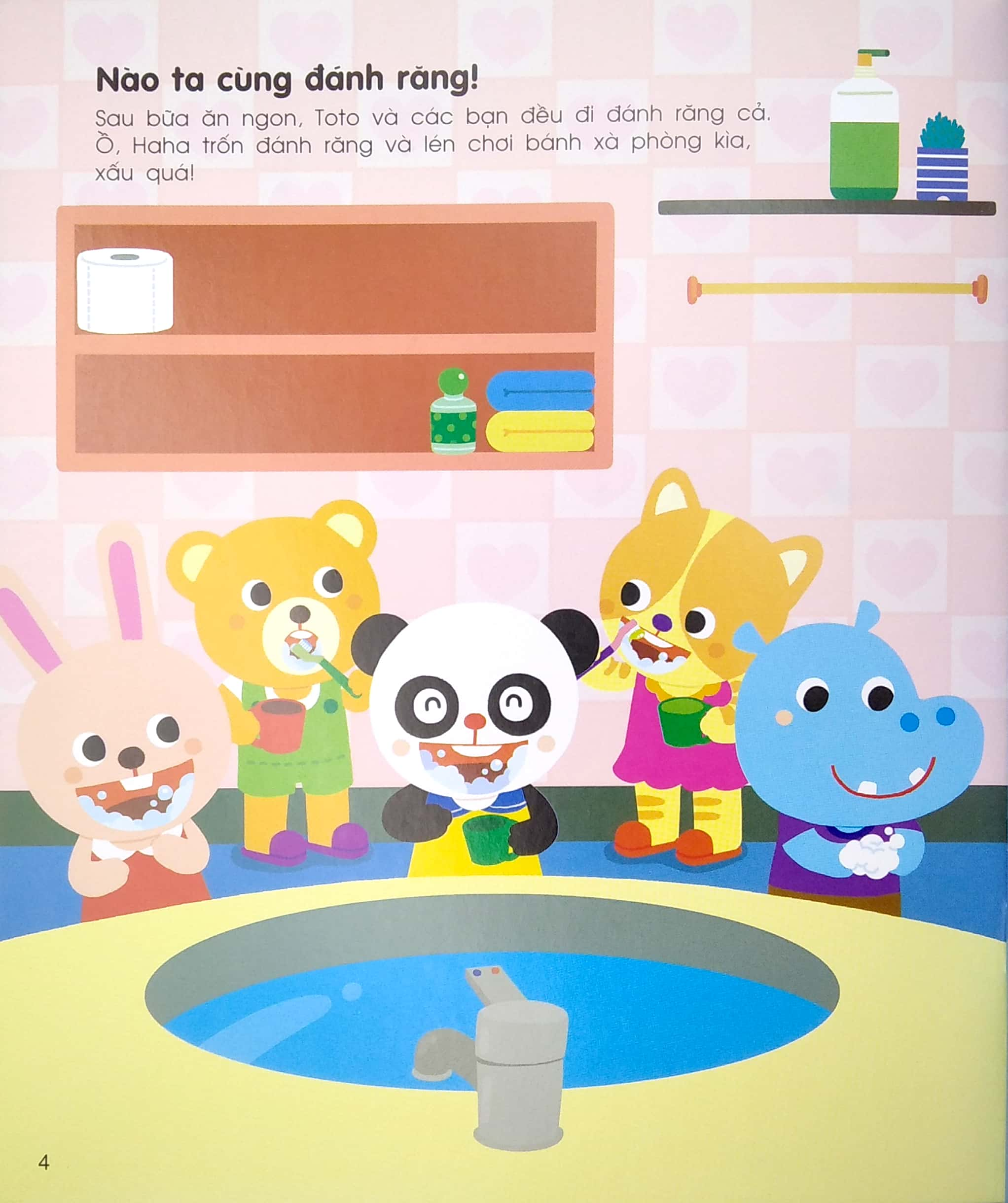 Hình thành thói quen tốt: Qua các hình ảnh minh họa ngộ nghĩnh, cuốn sách hướng dẫn bé các bước đánh răng, tắm rửa, mặc quần áo một cách khoa học và hiệu quả.