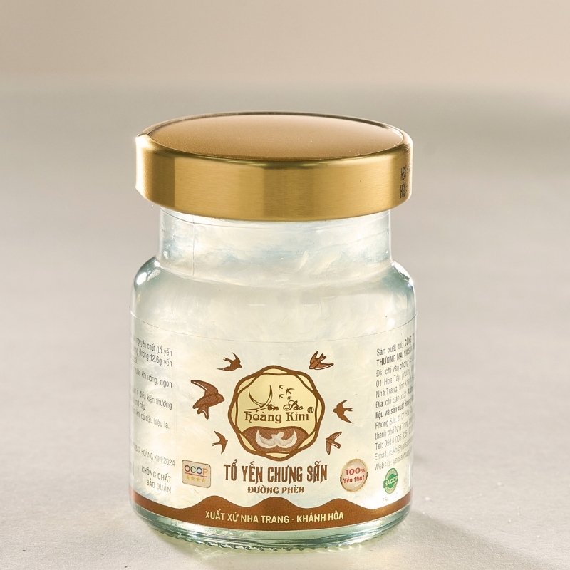 Yến Sào Hoàng Kim - Dinh Dưỡng Vẹn Nguyên Từ Thiên Nhiên, Tiện Lợi Mỗi Ngày Trong nhịp sống hiện đại, việc duy trì một chế độ dinh dưỡng cân bằng để tăng cường sức khỏe là vô cùng cần thiết. Sản phẩm Tổ Yến Chưng Sẵn Đường Phèn của thương hiệu Yến Sào Hoàng Kim là giải pháp dinh dưỡng toàn diện, kết hợp giữa phương pháp chưng cất truyền thống và công nghệ hiện đại, giúp giữ trọn vẹn dưỡng chất quý giá của yến sào. Đây là lựa chọn đáng tin cậy để chăm sóc sức khỏe cho bản thân và những người thân yêu. Điểm Vượt Trội Của Tổ Yến Chưng Sẵn Đường Phèn Hoàng Kim: Chất Lượng OCOP 4 Sao Tỉnh Khánh Hòa: Sản phẩm vinh dự được UBND tỉnh Khánh Hòa chứng nhận OCOP 4 sao năm 2024. Đây là sự bảo chứng của cơ quan nhà nước về một sản phẩm địa phương có chất lượng vượt trội và nguồn gốc rõ ràng. 100% Thành Phần Tự Nhiên, Tinh Khiết: Chúng tôi cam kết sử dụng yến sào nguyên chất , kết hợp với vị ngọt thanh của đường phèn và sự ấm nóng của gừng tươi. Sản phẩm hoàn toàn không chứa chất bảo quản, an toàn tuyệt đối cho sức khỏe. Quy Trình Sản Xuất Chuẩn Quốc Tế HACCP: Toàn bộ quy trình được sản xuất khép kín, ứng dụng công nghệ chưng hấp tiệt trùng hiện đại theo tiêu chuẩn quốc tế HACCP, giúp giữ trọn giá trị dinh dưỡng và đảm bảo vệ sinh an toàn thực phẩm. Bồi Bổ Sức Khỏe Toàn Diện: Sản phẩm là nguồn dinh dưỡng lý tưởng giúp bồi bổ cơ thể, tăng cường sức đề kháng, đặc biệt phù hợp với người lớn tuổi và người cần phục hồi sức khỏe. Thông Tin Chi Tiết Sản Phẩm: Thương hiệu: Yến Sào Hoàng Kim Xuất xứ: Việt Nam Thành phần: Nước (68g), yến sào nguyên chất (1.5g yến khô, tương đương 12.6g yến tươi), đường phèn (5.5g), gừng tươi. Đối tượng sử dụng: Người lớn tuổi, phụ nữ mang thai , người bận rộn, người có sức đề kháng kém. Hướng dẫn sử dụng: Lắc đều trước khi uống, ngon hơn khi uống lạnh. Nên dùng hết sau khi mở nắp. Hạn sử dụng: 12 tháng.