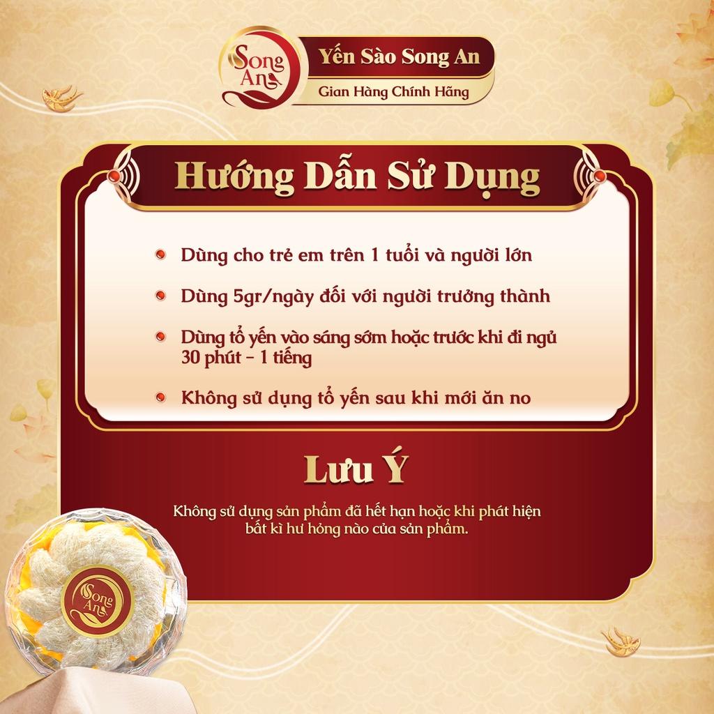 - Song An cam kết sản phẩm 100% yến nguyên chất đạt chuẩn.