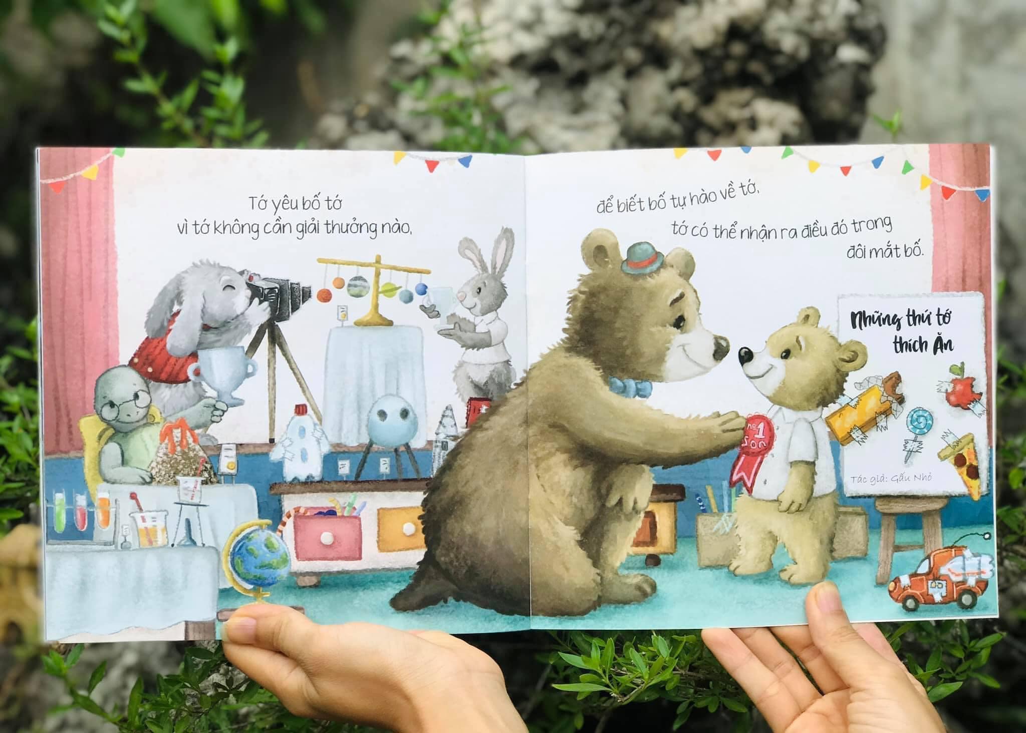 TỚ YÊU BỐ TỚ là cuốn sách nói về tình yêu của bạn Gấu Brody với bố bạn ấy. Gấu Brody đã liệt kê ra rất nhiều lý do khiến bạn yêu bố. Bên cạnh đó là hình ảnh Gấu Brody bên cạnh bố ngay cả khi vui lẫn lúc buồn, cả khi ở nhà lẫn lúc ra ngoài.