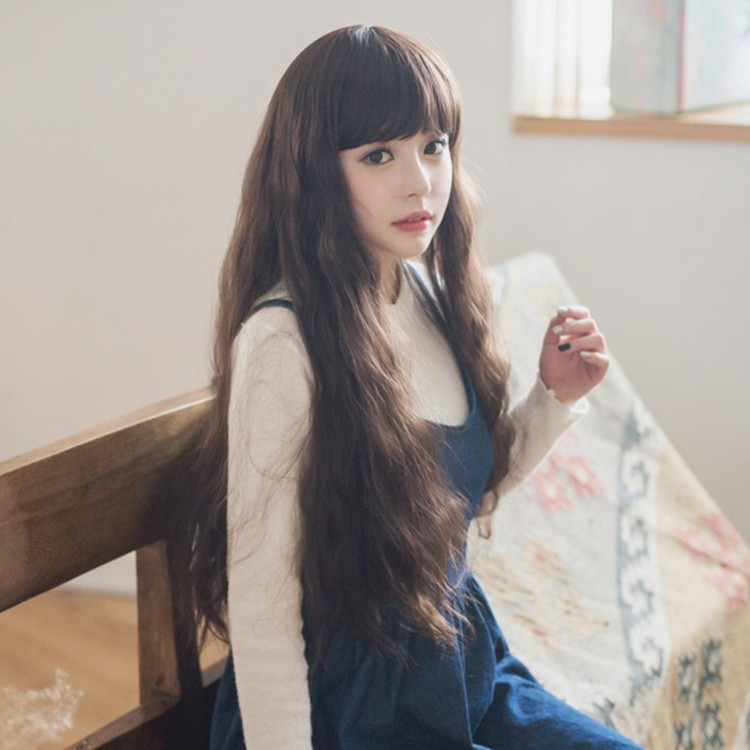 ✨Tóc giả nữ nguyên đầu giống hình tương đối 90%, mái ngang, xoăn đẹp (tặng kèm 1 cái lưới trùm tóc)