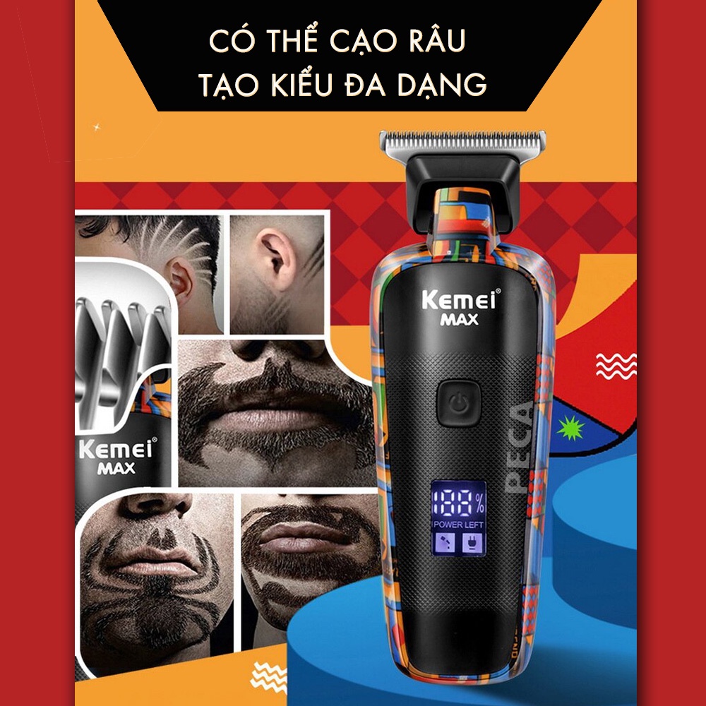 ✨Tông đơ chấn viền cao cấp Kemei KM-MAX5090 phiên bản trend màn hình LCD hiển thị sạc nhanh USB có thể cắt tóc, cạo đầu, fade trắng chân tóc, bấm viền