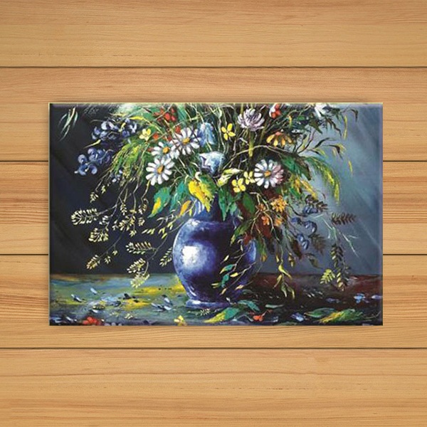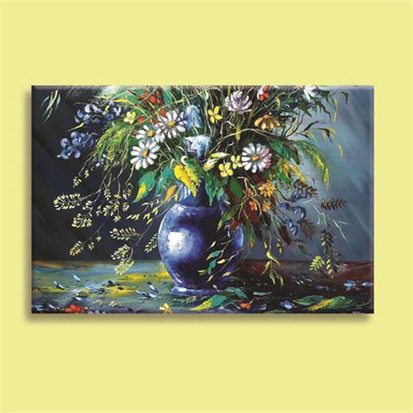 - Bức tranh tương phản trên khung nền tối làm nổi bật lên một bình hoa đầy màu sắc; bố cục đẹp mắt, cách phối màu tạo cho bức tranh từng mảng sáng tối thật hài hòa sẽ làm cho không gian gia đình bạn thêm phần sống động và đầy sắc màu.