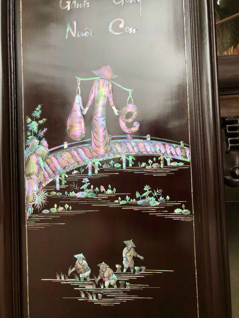 Tranh câu đối cha mẹ khảm ốc đỏ singapore giá 100tr Lh 0965608392