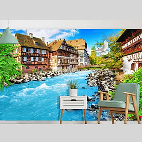 Tranh dán tường 3D phong cảnh Châu Âu cho phòng khách