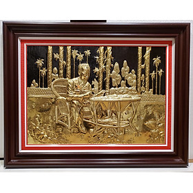 Mua tại TiktokTranh đồng vàng liền tấm Bác HỒ ( HỒ CHỦ TỊCH ) đang ngồi làm viêc trong vườn hoa phủ chủ tịch. Chất liệu tranh được làm từ tấm đồng vàng nguyên chất gò nổi rất tinh xảo. Khung tranh màu vân gỗ , nhựa compoxit cao cấp bền đẹp cùng thời gian. Cam kết tranh như mẫu QC