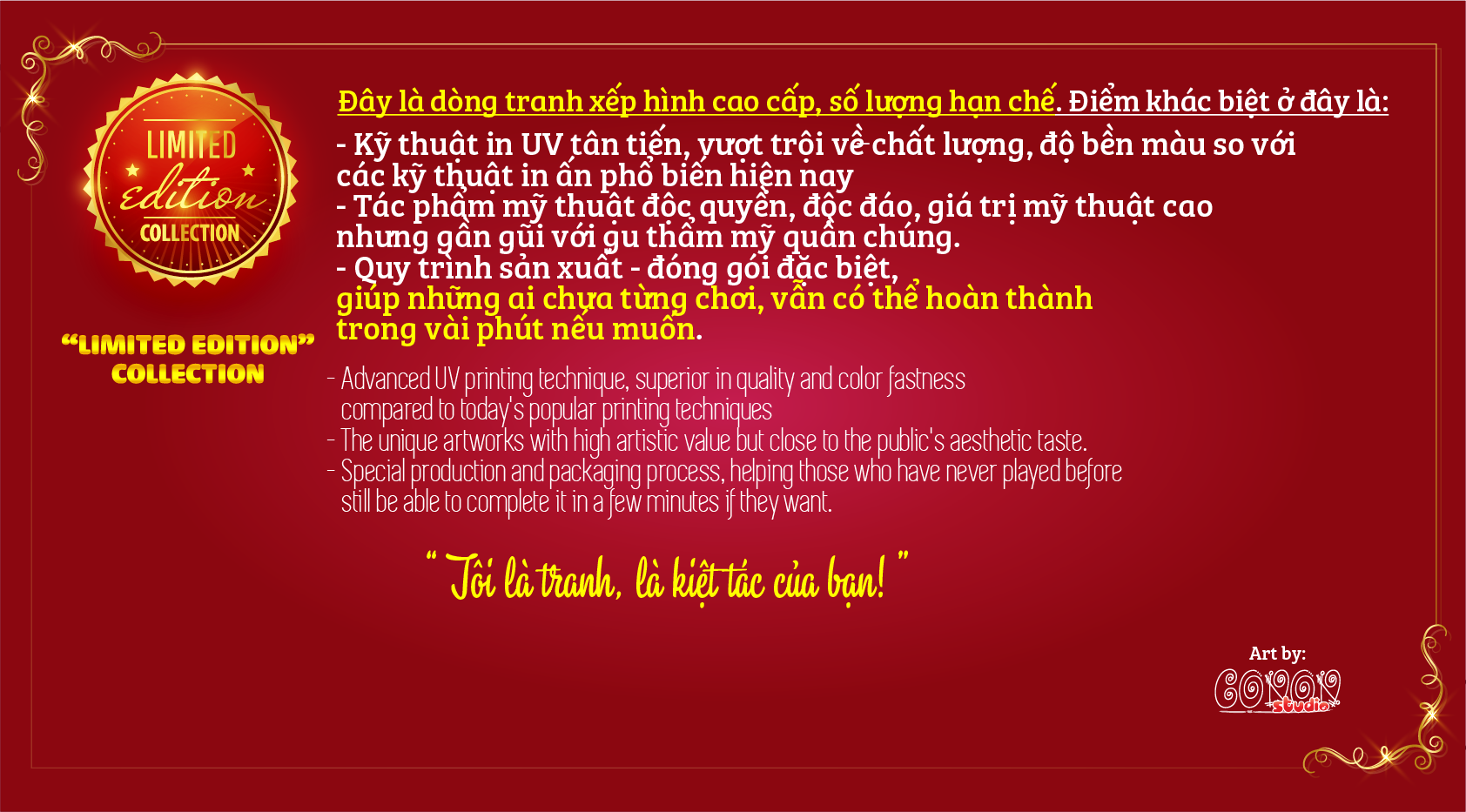 Puzzle Bộ xếp hình 1000 mảnh - Chủ đề tranh sơn dầu Kích thước sau khi hoàn thành: 70 x 50cm Chất liệu: giấy