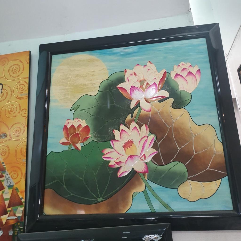 - Tranh sơn mài hoa sen cao cấp, có khung sơn mài đẹp