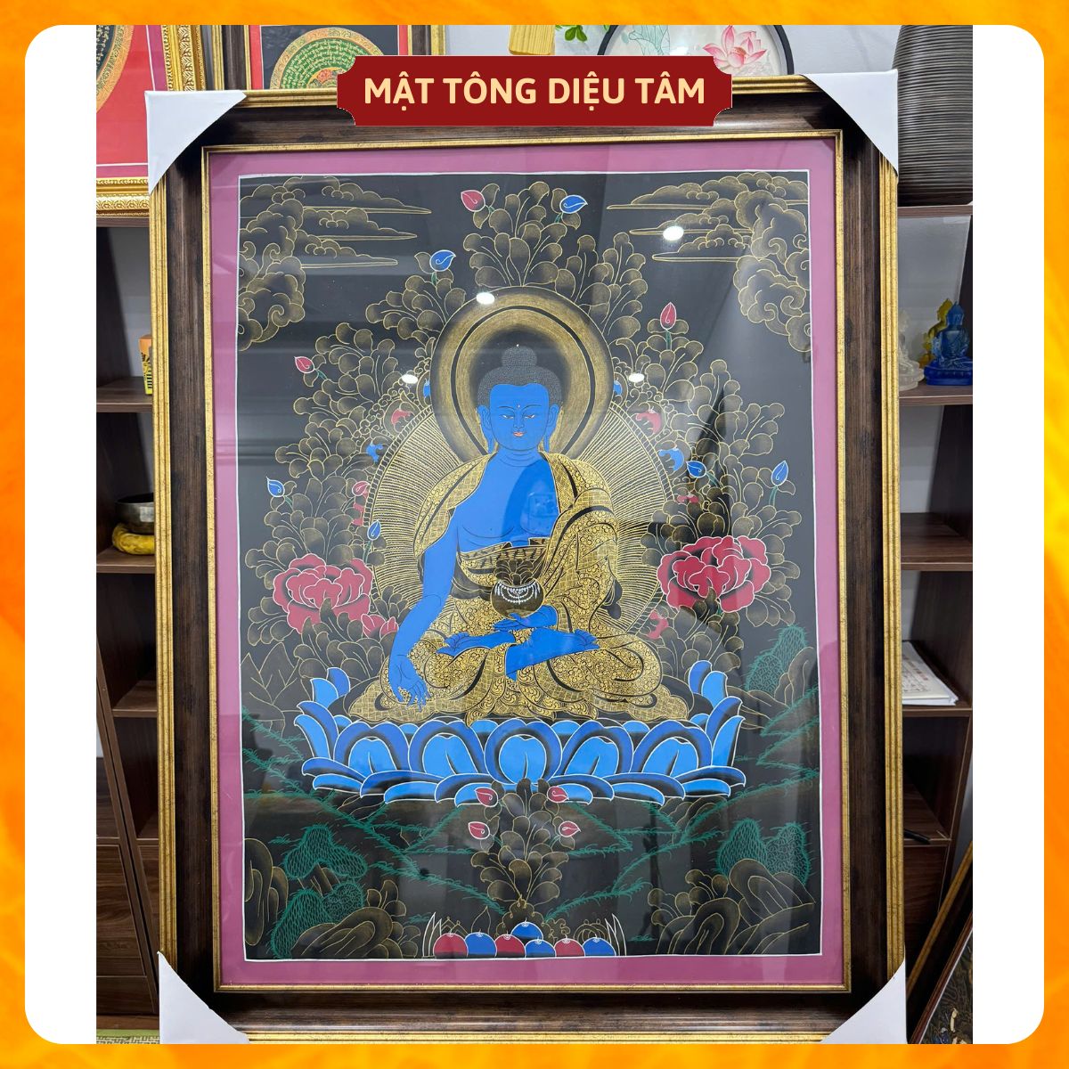 ✨Tranh Thangka Dược sư Thủ Công Nepal Tranh Phật Dược Sư Xanh Dương handmade 92cm Biểu Tượng Chữa Lành Mật tông Diệu Tâm