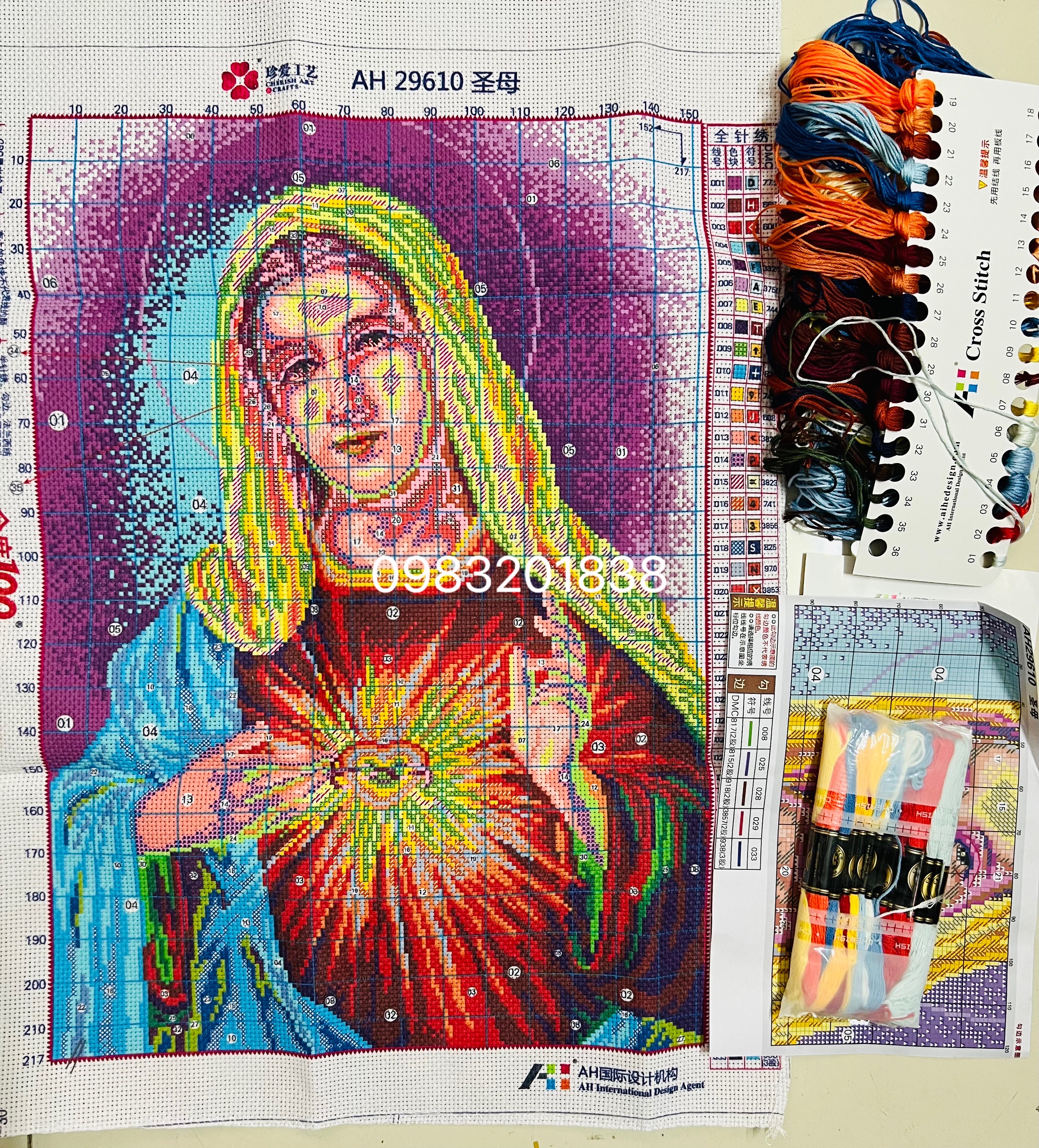 ✨Tranh thêu chữ thập Đức mẹ al29610, kích thước 45 x 60 cm