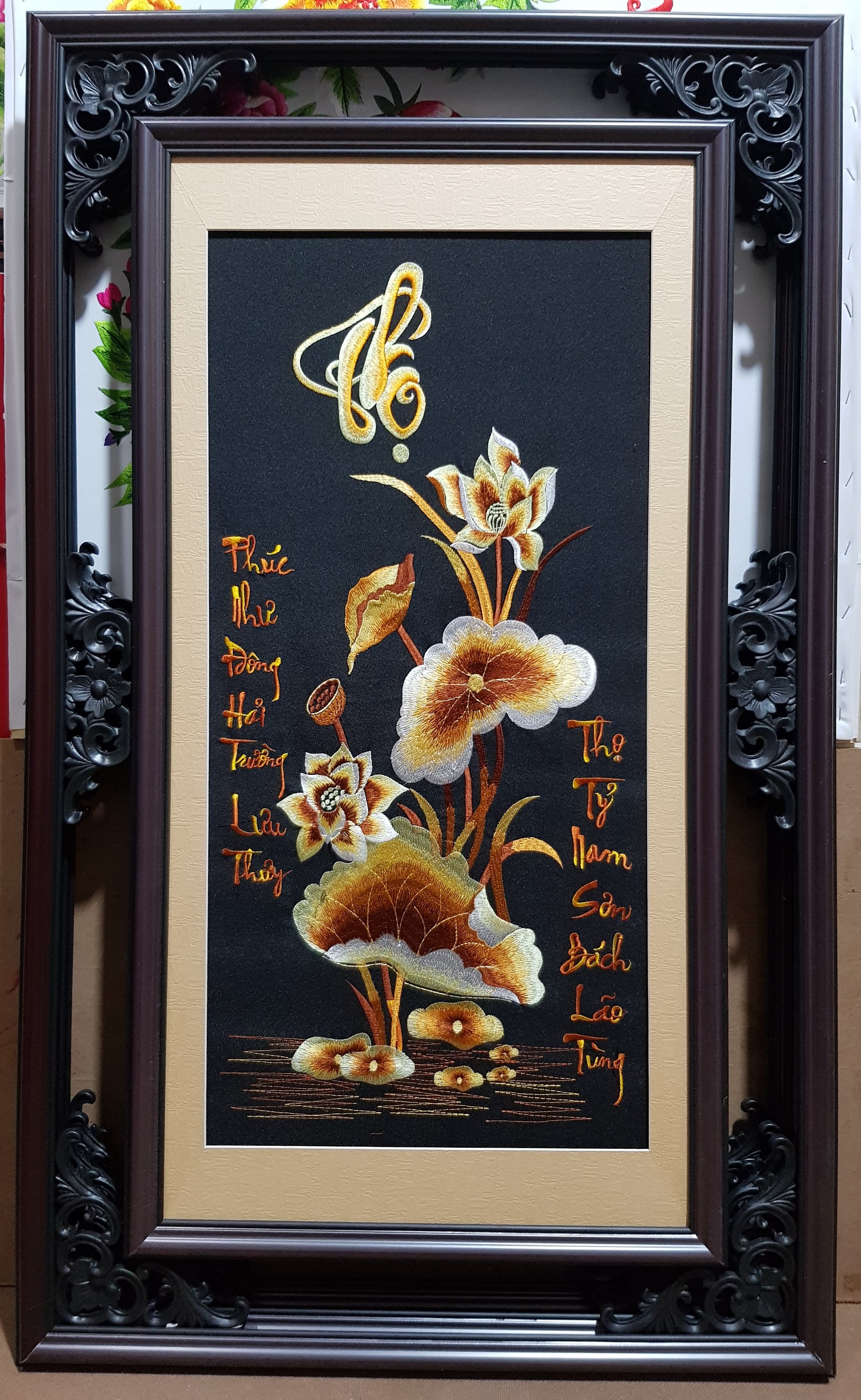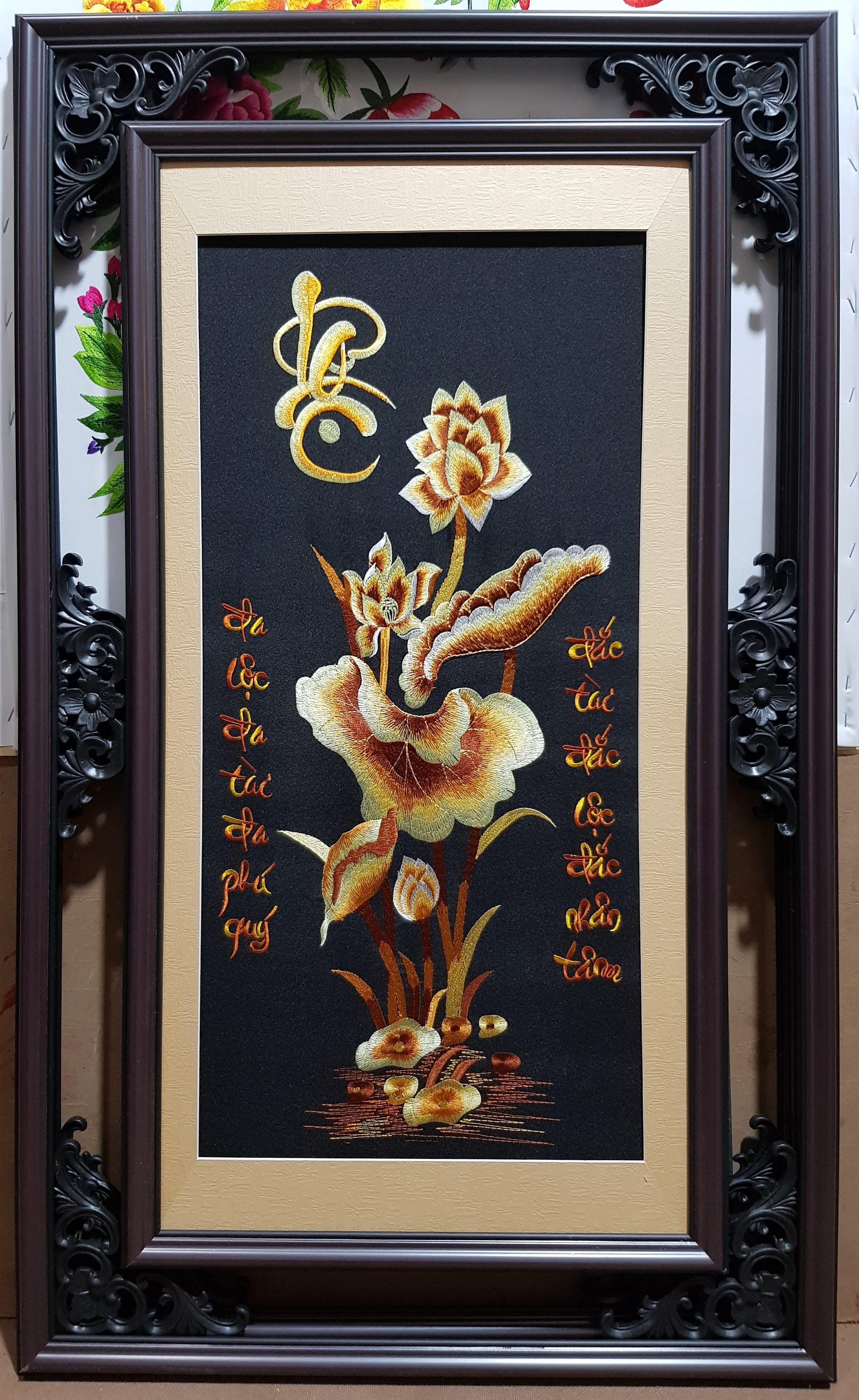 ✨TRANH THÊU HOA SEN VÀNG - PHÚC LỘC THỌ