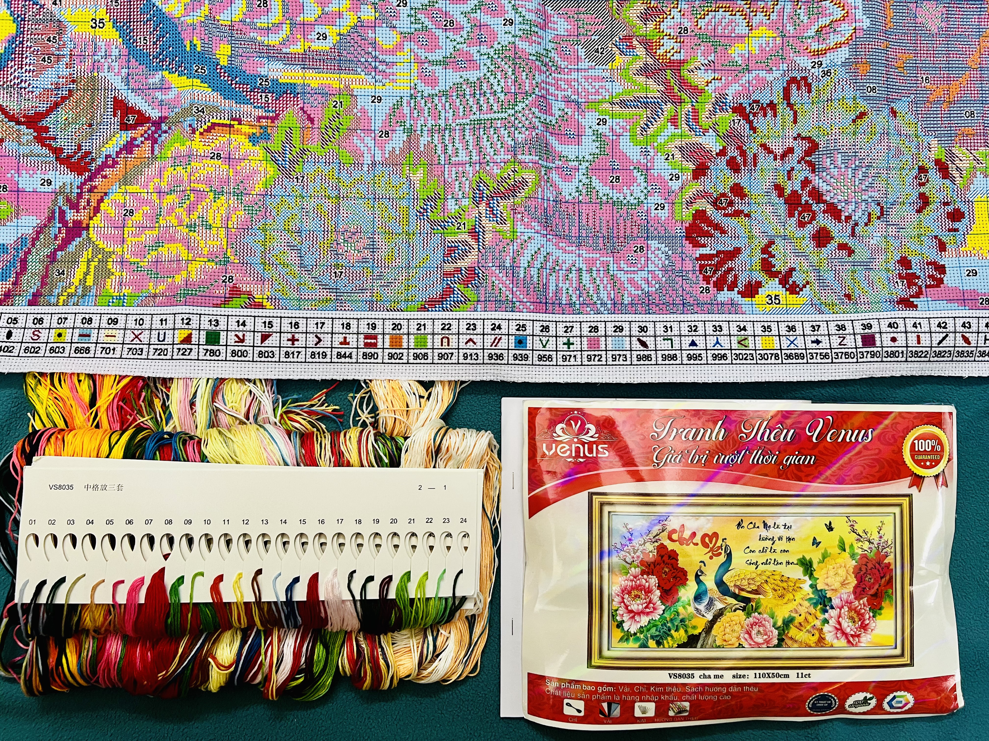 Sản phẩm này vải tốt, chỉ đẹp, phôi in rõ ràng, ký hiệu không nhầm lẫn. Thể loại: Tranh thêu chữ thập - sản phẩm này tranh chưa thêu. Kích thước: 138 x 70 cm
