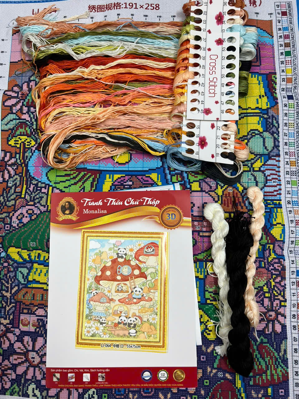Tranh này thêu 3 sợi nha khách, có chart đi kèm