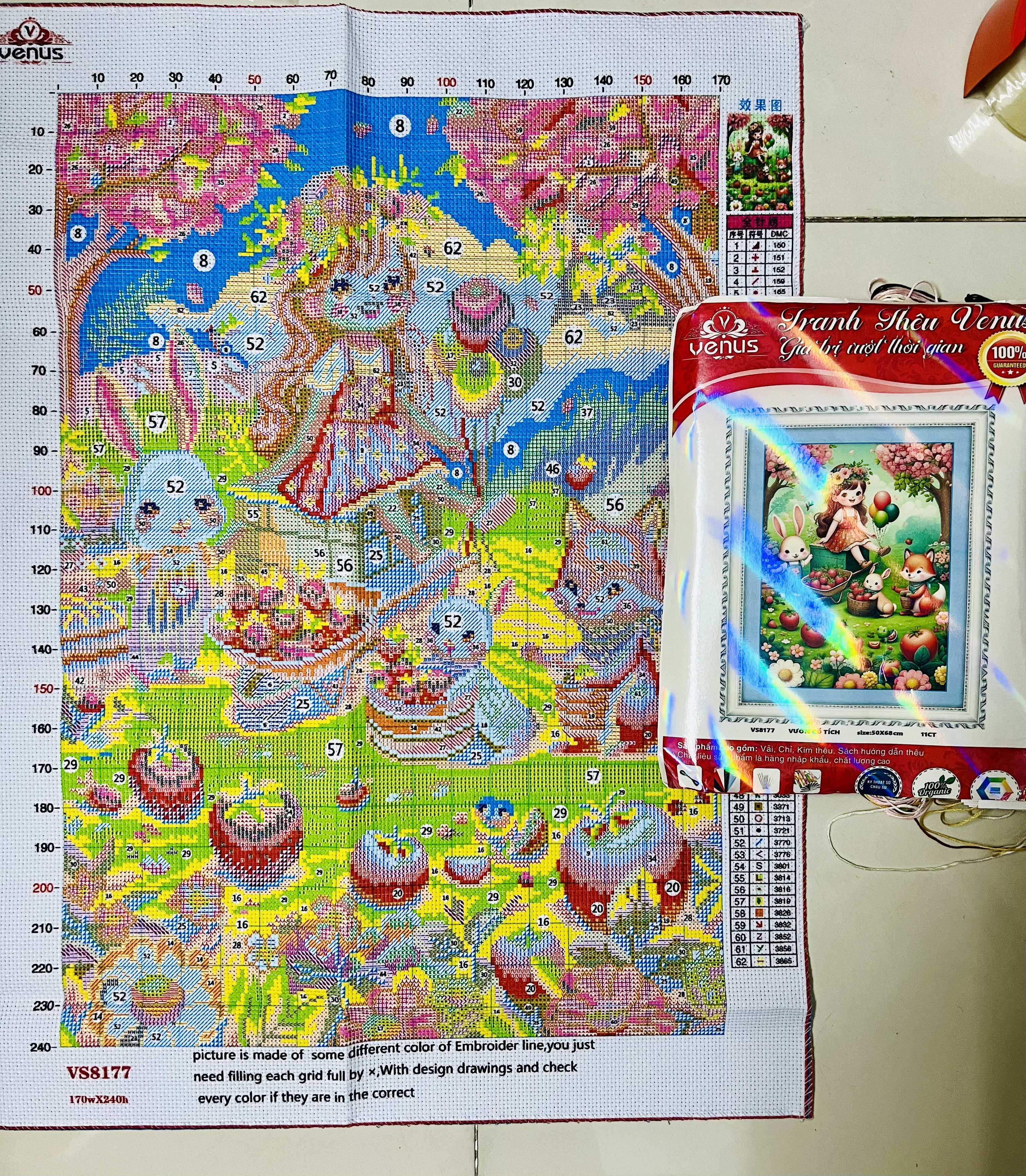 Tên tranh: Tranh thêu chữ thập Cô gái vs8872 Sản phẩm là tranh của hãng venus Thể loại: Tranh thêu chữ thập - sản phẩm này tranh chưa thêu. Kích thước: 50 x 68 cm