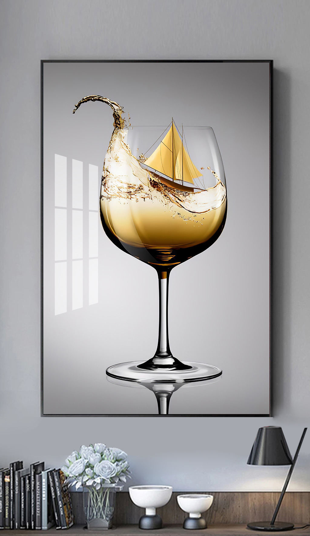 Tranh treo tường trang trí bếp phòng ăn Ly r.ượu nghệ thuật BK0034