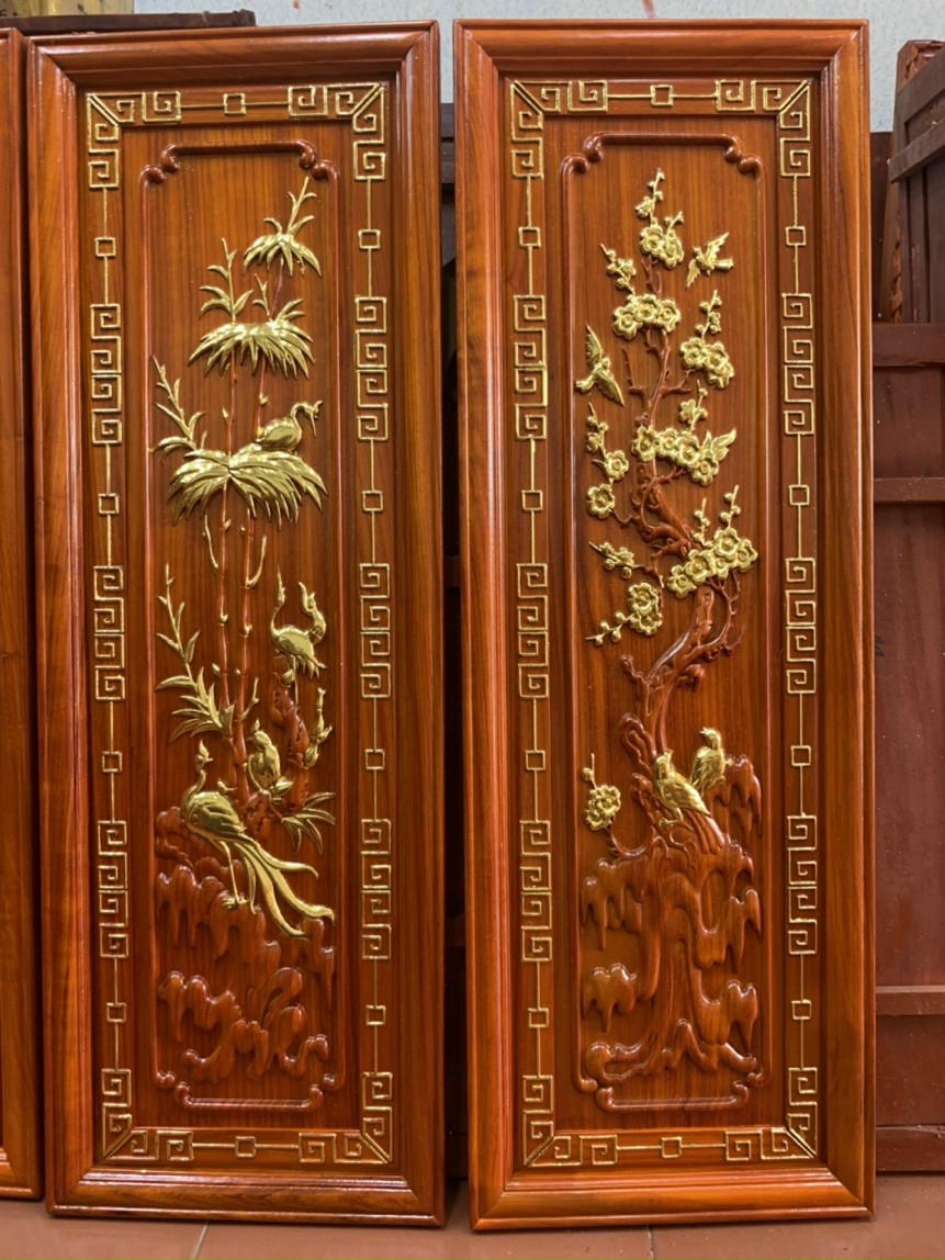 ✨Tranh tứ quý bốn mùa ,xuân ,hạ ,thu ,đông ,bằng gỗ hương đỏ và được sơn son dát vàng cao cấp