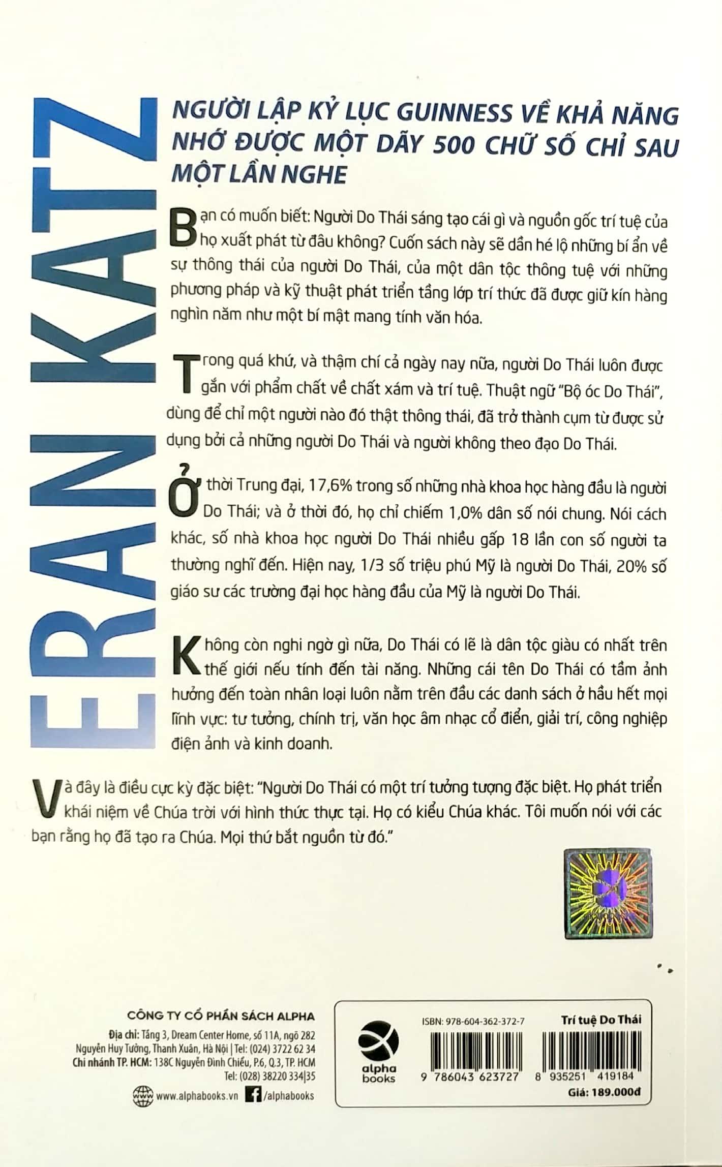 Trí tuệ Do Tháilà một cuốnsách tư duyđầy tham vọng trong việc nâng cao khả năng tự học tập, ghi nhớ và phân tích - những điều đã khiến người Do Thái vượt trội lên, chiếm lĩnh những vị trí quan trọng trong ngành truyền thông, ngân hàng và những giải thưởng sáng tạo trên thế giới.