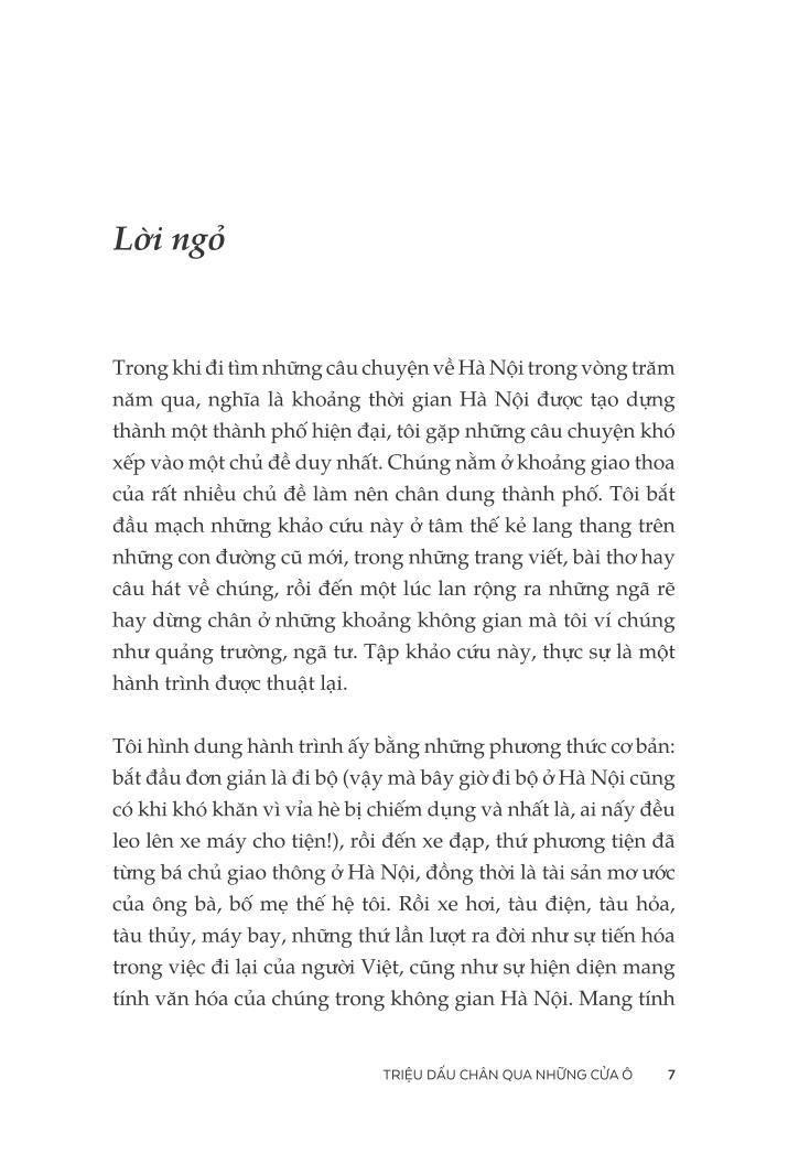 Triệu dấu chân qua những cửa ô vì thế là một cuộc lãng du chầm chậm theo cả hai chiều không gian - thời gian, hấp dẫn bởi vị sâu lắng ngậm ngùi pha lẫn nét hài hước ý nhị, bởi cho ta nhận thức về việc ta có kết nối gì với quá khứ và vì sao ta ở đây.