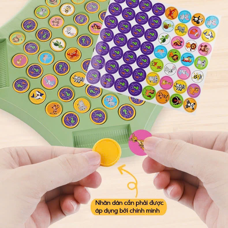 BỘ QUÀ TẶNG VÀ ĐI KÈM 60 MÓN: 52 CỜ TẶNG KÈM 4 CỜ TỔNG 56 CỜ (HÌNH ĐỘNG VẬT HOẶCTRÁI CÂY) 2 BÚT LẬT CỜ BAO BÌ HỘP QUÀ TẶNG X1 BÀN CỠ LỚN (2-4 NGƯỜI CHƠI) X1 CÁCH CHƠI: Lật hai thẻ mỗi vòng để tìm các thẻ trùng khớp. Khi lật không trùng khớp sẽ chuyển lượt chơi cho người kế tiếp. Bạn sẽ giành chiến thắng khi lật được hết các thẻ cờ trùng khớp sớm nhất. CHẤT LIỆU: ABS. Các mảnh được đánh bóng tinh xảo, an toàn tối đa với vành nhẫn, đảm bảo sự giải trí cho người chơi ở mọi lứa tuổi. Cải thiện tư duy logic: Bàn cờ này giúp rèn luyện trí nhớ, phát triển não bộ, tăng cường khả năng suy luận logic và giải quyết vấn đề với mỗi thử thách cho trẻ nhỏ. Dễ dàng mang theo: Thiết kế nhẹ mang lại niềm vui cho trẻ em trọng các buổi họp mặt gia đình, gặp gỡ bạn bè hoặc kỳ nghỉ. Gắn kết gia đình: Kết hợp giữa niềm vui và học tập, bàn cờ phù hợp này thúc đẩy sự tương tác giữa cha mẹ và con cái, gắn kết gia đình đồng thời tăng cường phát triển trí tuệ. Được thiết kế lớn cho 2-4 người chơi, nâng cao tư duy logic và thúc đây sự phát triên giữa người chơi