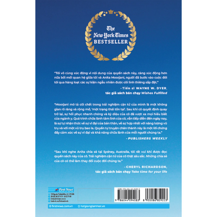“Trở về từ cõi chết” là cuốn sách dành cho tất cả mọi người. Dù bạn đang hạnh phúc, khổ đau, sợ hãi, tổn thương hay tuyệt vọng vì bệnh hiểm nghèo… thì hành trình của Anita chắc chắn cũng sẽ kích hoạt những trực giác sâu xa trong bạn. Thông điệp của Anita về sự hợp nhất khích lệ chúng ta thực hành sống tỉnh thức, vượt qua nỗi sợ hãi để theo đuổi ước mơ và sống đúng với bản chất của mình.