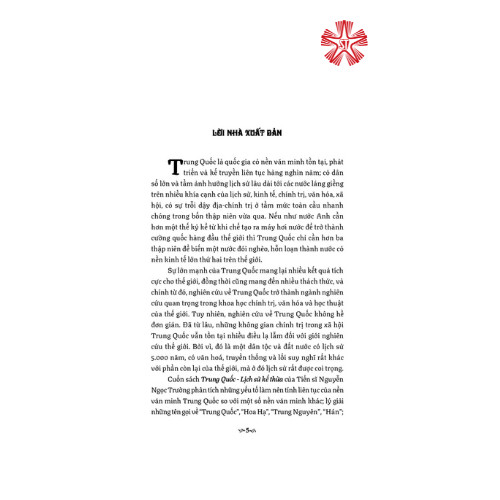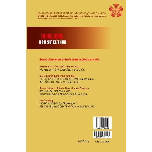 Cuốn sách Trung Quốc - Lịch sử kế thừa của Tiến sĩ Nguyễn Ngọc Trường phân tích những yếu tố làm nên tính liên tục của nền văn minh Trung Quốc so với một số nền văn minh khác; lý giải những tên gọi về “Trung Quốc”, “Hoa Hạ”, “Trung Nguyên”, “Hán”; một số nét khác biệt của người Trung Quốc tại các vùng, miền. Bên cạnh đó, tác giả cũng giới thiệu bốn nhà tư tưởng tiêu biểu thời Xuân Thu - Chiến Quốc (Khổng Tử, Lão Tử, Hàn Phi và Tôn Vũ); các học thuyết cổ đại về quan hệ giữa các quốc gia: hợp tung, liên hoành, viễn giao cận công.