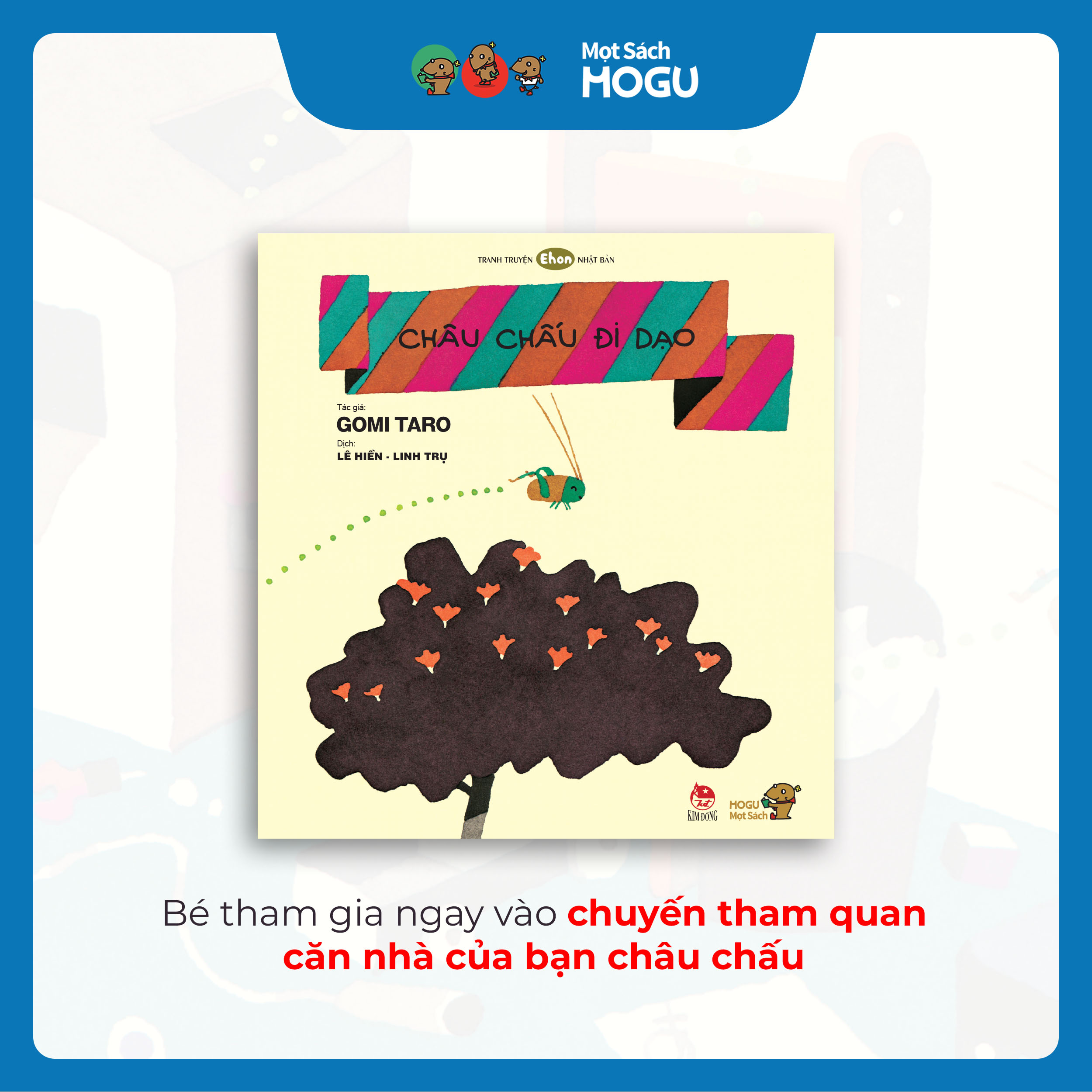“Châu chấu đi dạo” là một cuốn tranh truyện Ehon Nhật Bản đặc biệt dành cho trẻ từ 1–6 tuổi, được thiết kế như một chuyến hành trình nhỏ dẫn dắt bé vừa học, vừa chơi, vừa khám phá chính ngôi nhà của mình.