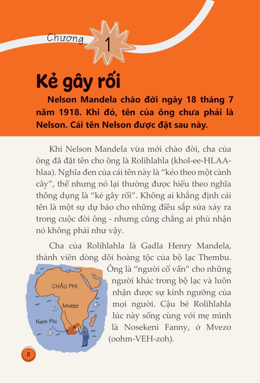 Cha của Rolihlahla là Gadla Henry Mandela, thành viên dòng dõi hoàng tộc của bộ lạc Thembu. Ông là “người cố vấn” cho những người khác trong bộ lạc và luôn nhận được sự kính ngưỡng của mọi người. Cậu bé Rolihlahla lúc này sống cùng với mẹ m.ình là Nosekeni Fanny, ở Mvezo (oohm-VEH-zoh).