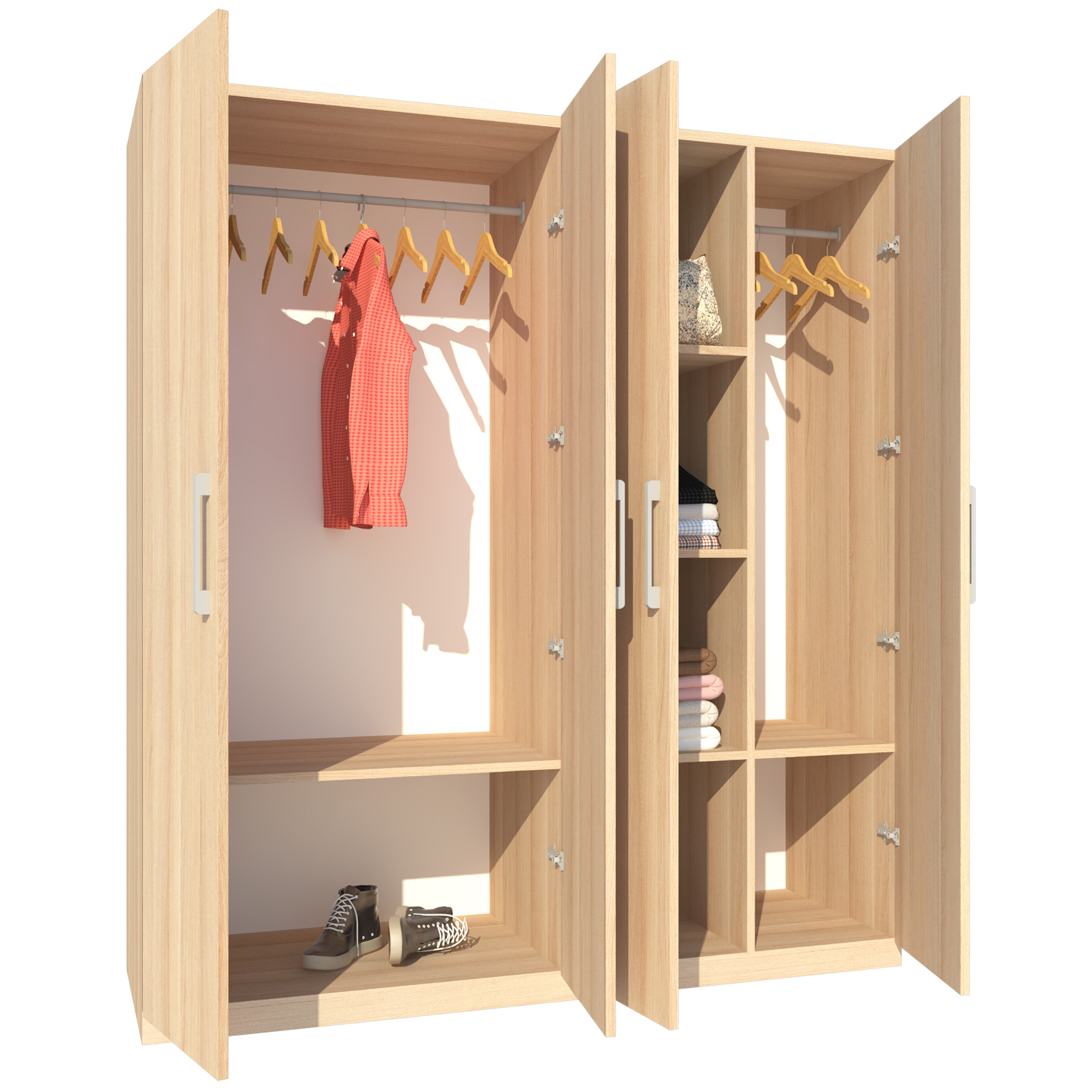+ Thiết kế sang trọng và tinh tế - Tủ quần áo gỗ cao cấp 1012-OHAHA 6 cánh mở với gam màu tối giản tạo cảm giác thư giản mà sang trọng. Là mẫu tủ