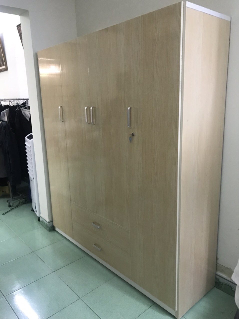 -kích thướt:ngang 115x cao 165x sâu 45 Phủ bì(nấp 45 hong 40cm ,tranh 3D 30k tấm dán dùm khách ạ) -Nếu bạn lo lắng tủ quá to k đem lên lầu được,hoặc đem lên tầng