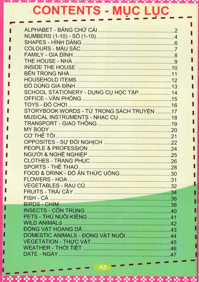 Từ Điển Anh Việt Bằng Hình Ảnh Từ Điển Anh Việt Bằng Hình Ảnh gồm các nội dung:Alphabet - Bảng chữ cáiNumbers (1-10) - Số (1-10)Colours - Màu sắcFamily - Gia đìnhThe house - NhàInside