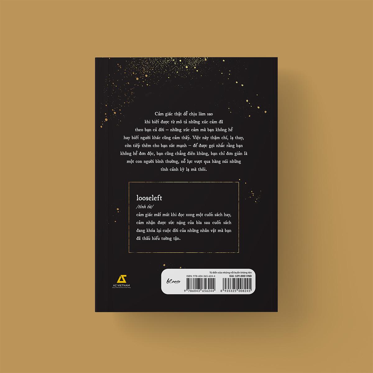 - John Koenig - Cảm giác thật dễ chịu làm sao khi biết được từ mô tả những xúc cảm đã theo bạn cả đời – những xúc cảm mà bạn không hề hay biết người khác cũng cảm thấy. Việc này thậm chí, lạ thay, còn tiếp thêm cho bạn sức mạnh − để được gợi nhắc rằng bạn không hề đơn độc, bạn cũng chẳng điên khùng, bạn chỉ đơn giản là một con người bình thường, nỗ lực vượt qua hàng núi những tình cảnh kỳ lạ mà thôi. looseleft /tính từ / cảm giác mất mát khi đọc xong một cuốn sách hay, cảm nhận được sức nặng của bìa sau cuốn sách đang khóa lại cuộc đời của những nhân vật mà bạn đã thấu hiểu tường tận. Thông tin tác giả: JOHN KOENIG sống tại Minnesota với vợ và con gái. Năm 2009, ông cho ra đời The Dictionary of Obscure Sorrows, khởi đầu là một trang blog tại địa chỉ , sau đó mở rộng thành loạt video trên YouTube. Cuốn sách của ông đã được John Green, từ tạp chí New York, và những người làm chương trình Radiolab dành lời khen ngợi. Bạn có thể liên lạc với ông qua địa chỉ obscuresorrows@.