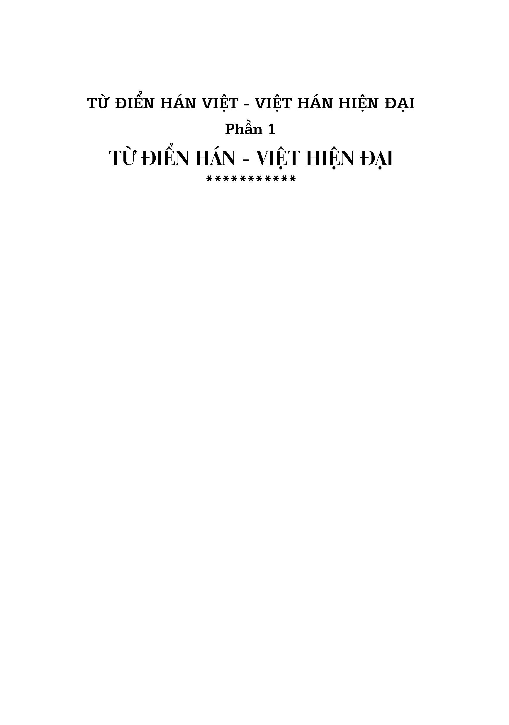 Khổ 10x19, bìa mềm, 1416 trang, in giấy trắng đẹp Để đáp ứng nhu cầu có công cụ đối chiếu hai ngôn ngữ Việt – Hán, chúng tôi đã biên soạn hai cuốn từ điển