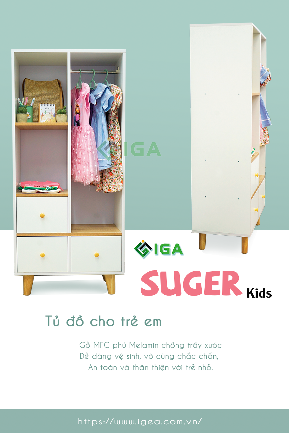 ✨Tủ Đồ Cho Bé, Tủ Quần Áo Cho Bé IGA Đa Năng - GP134