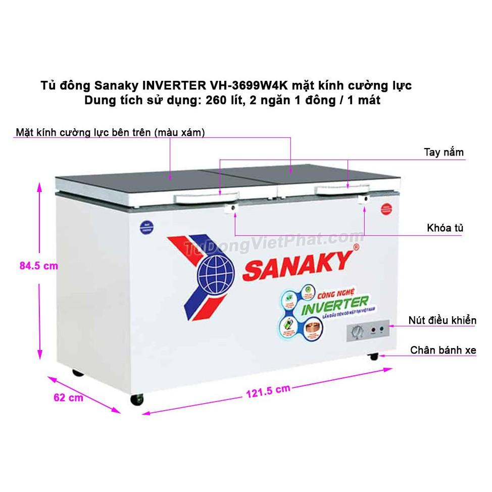 Tủ đông Inverter Sanaky VH-2599A3 Thiết kế vô cùng tiện ích với dung tích 208 lít Tủ đông Inverter Sanaky VH-2599A3 có dung tích hơn 200 lít rất phù hợp với nhu cầu sử dụng ở