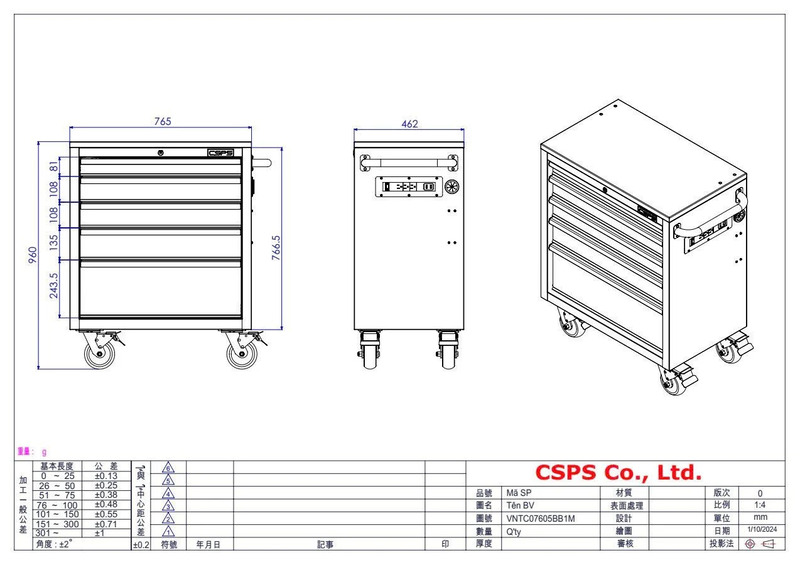 Thông số kỹ thuật của tủ dụng cụ đồ nghề 05 hộc kéo