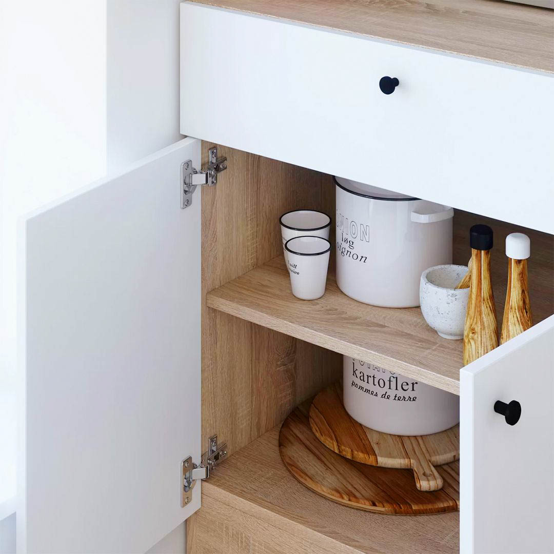 Tủ phòng ăn gỗ Darrow là lựa chọn hoàn hảo nhất cho những gia đình có không gian phòng bếp nhỏ. Tủ bếp gia đình SMLIFE có kích thước nhỏ gọn nhưng vẫn đảm bảo