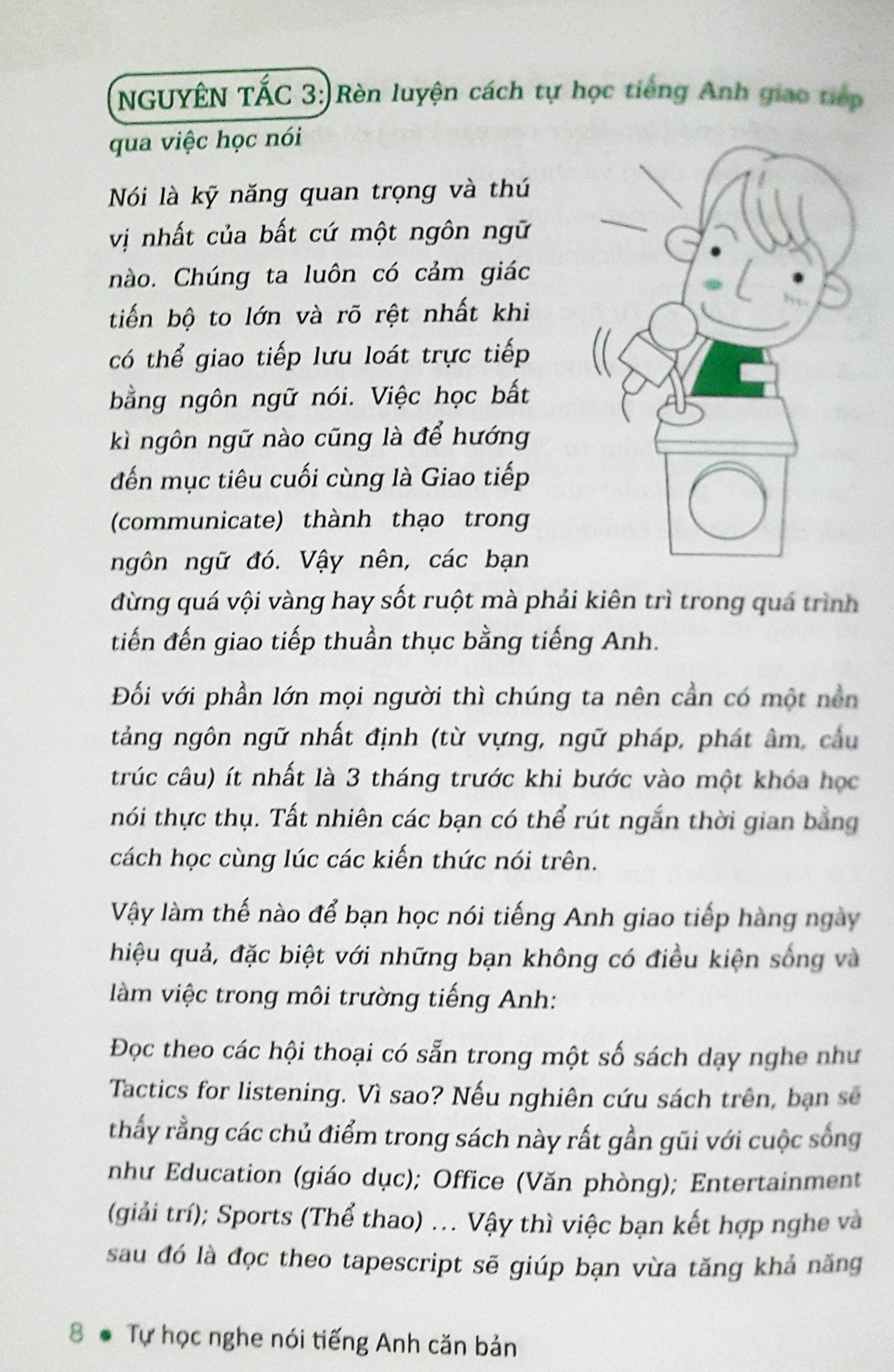 Tiếng Anh được coi là một chiếc cầu nối vô hình, nó giúp bạn không chỉ có cơ hội được giap tiếp với mọi người từ khắp nơi trên thế giới, mà còn có cơ hội được chinh phục kho tri thức dồi dào của nhân loại, bạn có thể tìm hiểu về cuộc sống, văn hóa, con người của nhiều nước khác nhau. Vì vậy, việc học giao tiếp tiếng Anh đang được rất nhiều người quan tâm, cuốn sách "Tự học nghe nói tiếng Anh căn bản" ra đời để đáp ứng nhu cầu đó.
