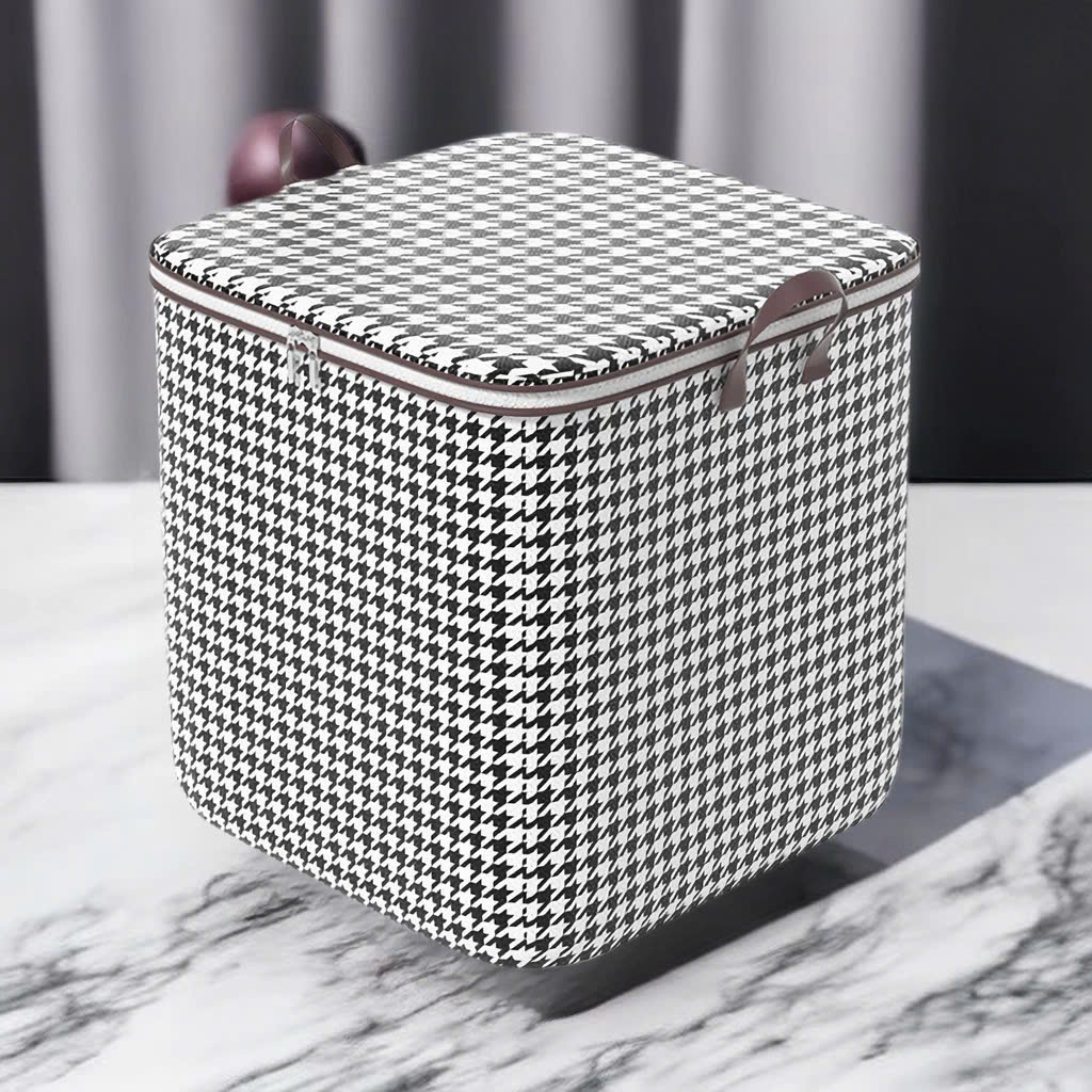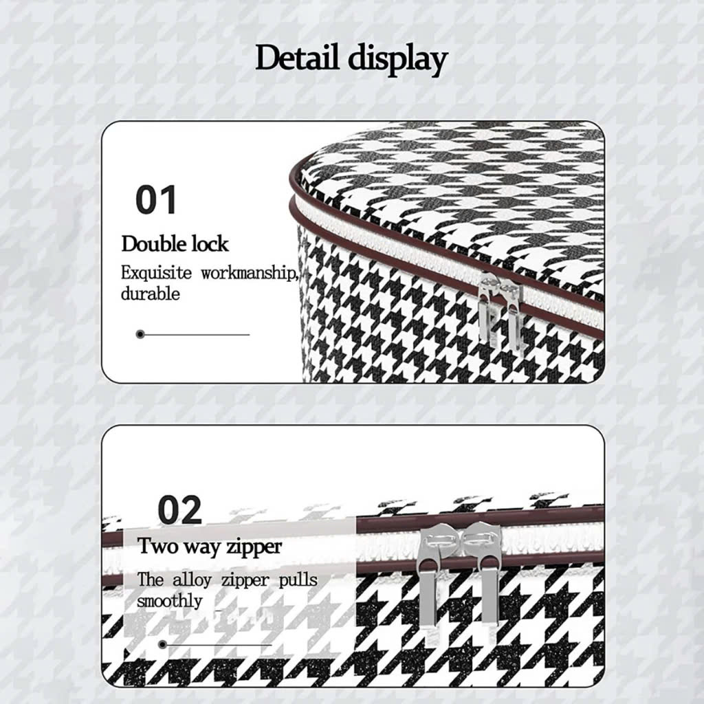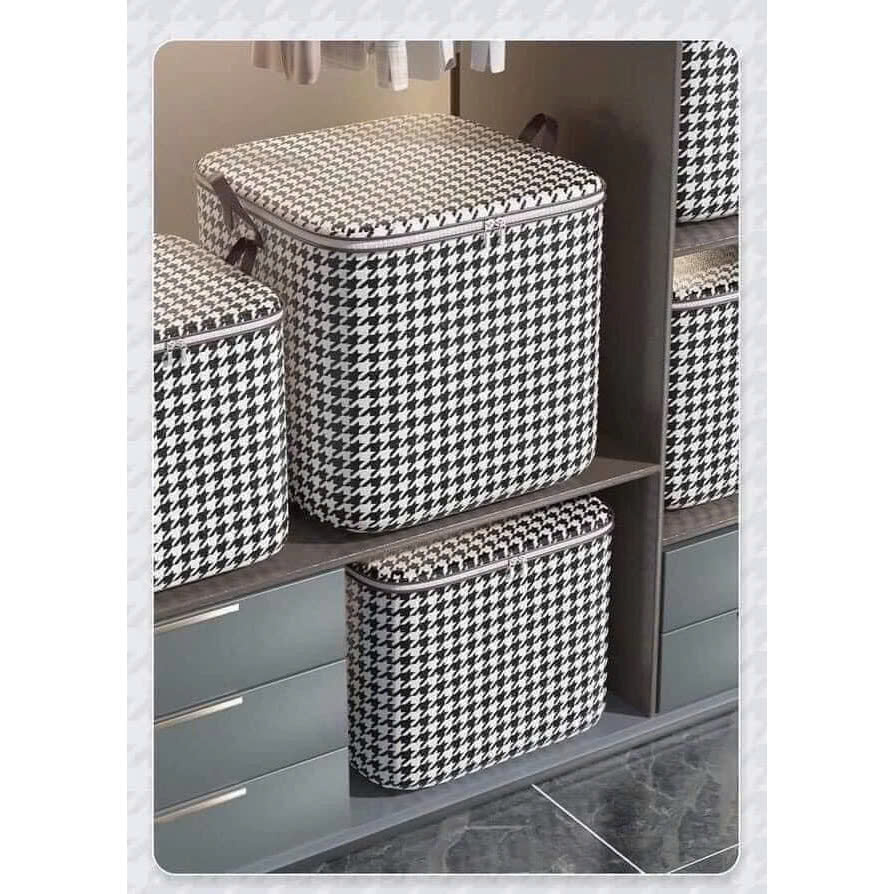 -Giỏ đựng chăn màng quần áo đa năng , họa tiết caro sọc trắng đen cao cấp ,có dây kéo ,quai cầm giúp tiện lợi trong việc cầm , xách di chuyển tiết kiệm không