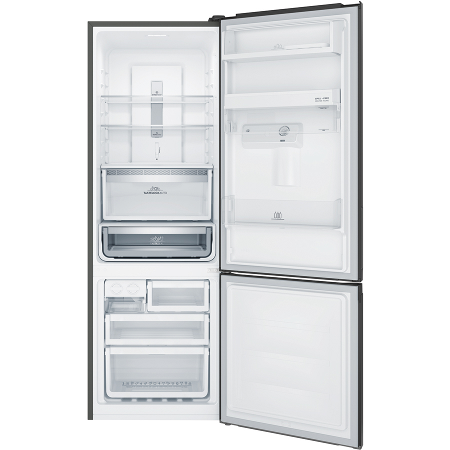 • Thử nghiệm cho kết quả T110568M8 <20% trọng lượng giảm trung bình sau 7 ngày lưu trữ (dòng sản phẩm ETB3402, ETB3702). xà lách -13%, dâu tây -6%, cà rốt -8%, nấm -18%.     Lấy nước bên ngoài tiện dụng Tính năng WaterStream giúp bạn lấy nước lạnh trực tiếp từ cánh cửa thật dễ dàng mà không cần mở tủ. Dung tích bình chứa lên đến 4L có thể cung cấp 16 ly nước chỉ với  1 lần đổ đầy.   Nhiệt độ ổn định thực phẩm tươi ngon Công nghệ EvenTemp giữ nhiệt độ luôn ổn định, bằng cách làm lạnh từng ngăn riêng biệt qua 6 lỗ thoát khí. Độ lạnh được duy trì giúp giữ hương vị và kết cấu thực phẩm lâu hơn.   Khử mùi diệt khuẩn với TasteGuard Tính năng TasteGuard sử dụng bộ lọc than hoạt tính giữ cho tủ lạnh của bạn luôn tươi mát, sạch khuẩn và không còn mùi khó chịu.   Lưu trữ an toàn tiện lợi Khay kim loại cao cấp đảm bảo không gian lưu trữ lý tưởng, bảo quản độ tươi ngon của thực phẩm lâu hơn. Bạn còn có thể tháo rời khay khi cần vệ sinh thật dễ dàng.   Ngăn đá xoay tiện dụng Bạn chỉ cần đổ nước vào khay chứa, sau đó vặn núm để thả các viên đá vào ngăn đựng bên dưới. Thưởng thức món uống mát lạnh cùng bạn bè ngay tại nhà. Tiết kiệm năng lượng hiệu quả Công nghệ NutriFresh Inverter duy trì nhiệt độ tủ lạnh luôn ổn định, thực phẩm luôn tươi ngon và tiết kiệm điện năng hiệu quả .