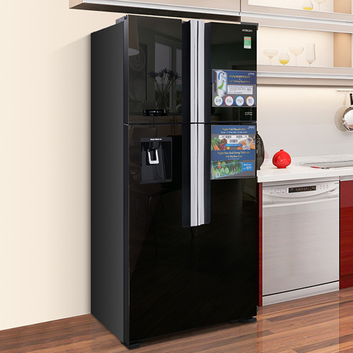 Tủ Lạnh Inverter Hitachi R-FW690PGV7-GBK được thiết kế theo kiểu side by side hiện đại với 4 cửa và tích hợp vòi lấy nước ngoài cánh tiện dụng, giúp người dùng dễ dàng thao tác sử dụng kết hợp với gam màu đen tinh tế mang đến vẻ đẹp sang trọng cho không gian nội thất nhà bạn. Hơn nữa, chiếc tủ lạnh Hitachi có dung tích lên đến 540 lít sở hữu không gian lưu trữ vô cùng rộng rãi, phù hợp với những gia đình 5 - 7 người.