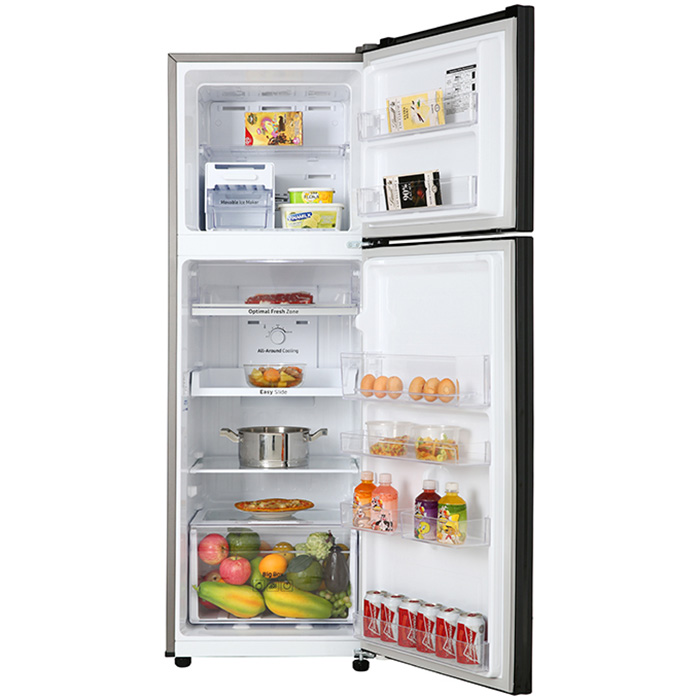 - Dung tích sử dụng 266 lít phù hợp gia đình 2 - 3 thành viên. - Luồng khí lạnh đa chiều Multi Air Flow làm lạnh đồng đều, giữ thực phẩm luôn tươi ngon. - LINEARCooling ổn