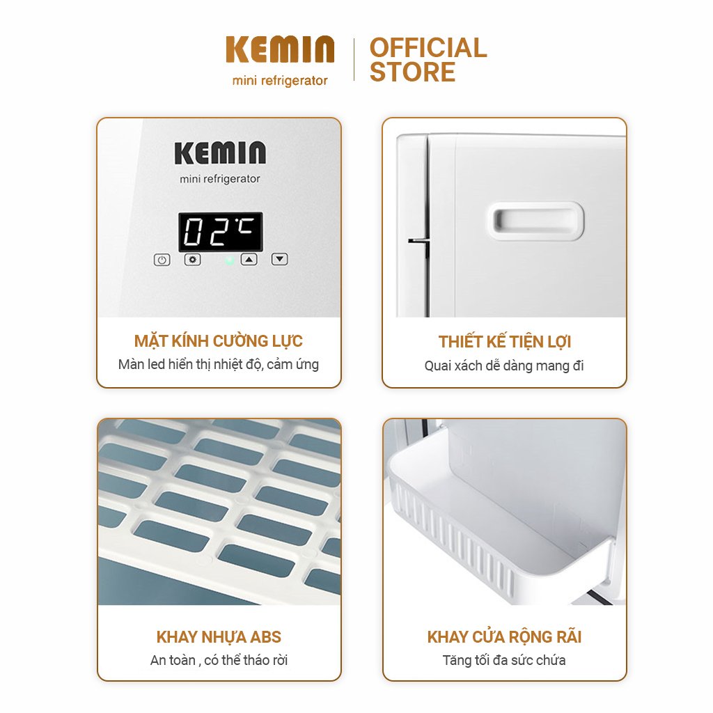 TỦ LẠNH MINI KEMIN 22L LÀ DÒNG TỦ CHỈNH NHIỆT THEO Ý MUỐN kích thước: 38x29x42 cm Màn hình Led hiển thị hiện độ và điều chỉnh cảm ứng Làm nóng đến 65 độ C