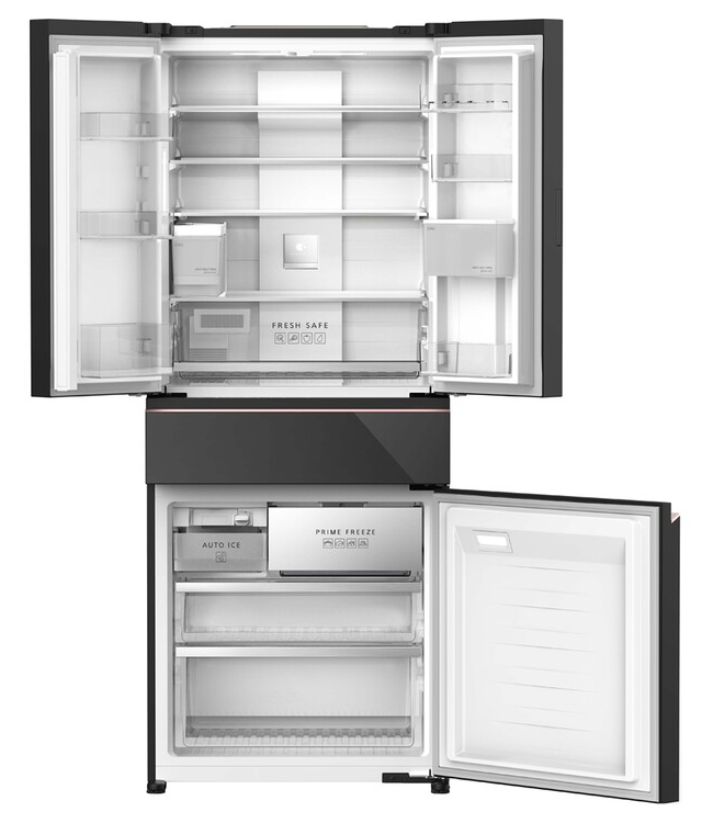 Thiết kế Multi Door lắp âm, trang bị hệ thống đèn cảm ứng thông minh. - Ngăn chuyển đổi linh hoạt giữa đông mềm -3°C và Pro Age -1°C. - Ngăn cấp đông sâu -30°C bảo quản độ ẩm và sự tươi ngon của thực phẩm. - Làm đá tự động chỉ 60 phút giúp bạn thưởng thức đồ uống nhanh, tiện lợi. - Khử mùi, diệt khuẩn hiệu quả với công nghệ PureAir. - Công nghệ Origin Inverter tiết kiệm điện, vận hành êm ái. Tổng quan - Kiểu tủ:Multi Door - 4 cánh - Dung tích sử dụng:533 lít - 4 - 5 người - Dung tích tổng:564 lít - Dung tích ngăn đá:199 lít - Dung tích ngăn lạnh:314.5 lít - Dung tích ngăn chuyển đổi:19.5 lít - Chất liệu cửa tủ lạnh:Mặt kính - Chất liệu khay ngăn lạnh:Kính chịu lực - Chất liệu ống dẫn gas, dàn lạnh:Ống dẫn gas bằng Sắt và Đồng - Lá tản nhiệt bằng Nhôm - Năm ra mắt:2024 - Sản xuất tại:Trung Quốc Mức tiêu thụ điện năng