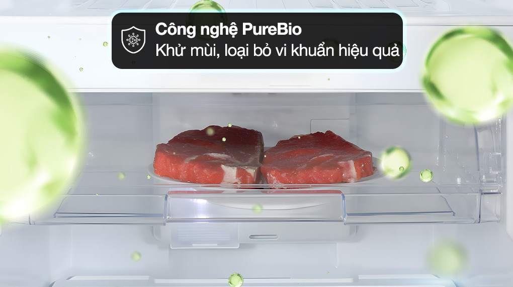 - Hỗ Trợ Suốt Thời Gian Sử Dụng Có khả năng vận hành êm ái và sử dụng điện năng tiết kiệm nhờ công nghệ Origin Inverter. Đồng thời, sản phẩm còn có thể khử mùi diệt khuẩn với công nghệ Pure Bio và thiết kế ngăn đông lớn thuận tiện cho việc bảo quản thực phẩm. Tổng quan thiết kế - Toshiba Inverter 233 lít GR-RT303WE-PMV(52) được thiết kế theo kiểu quen thuộc với phần lớn người tiêu dùng Việt. Ngoài ra, chất liệu cửa tủ còn được làm bằng kim loại đen Sapphire tinh tế, phù hợp lắp đặt trong không gian nhà bếp của gia đình.