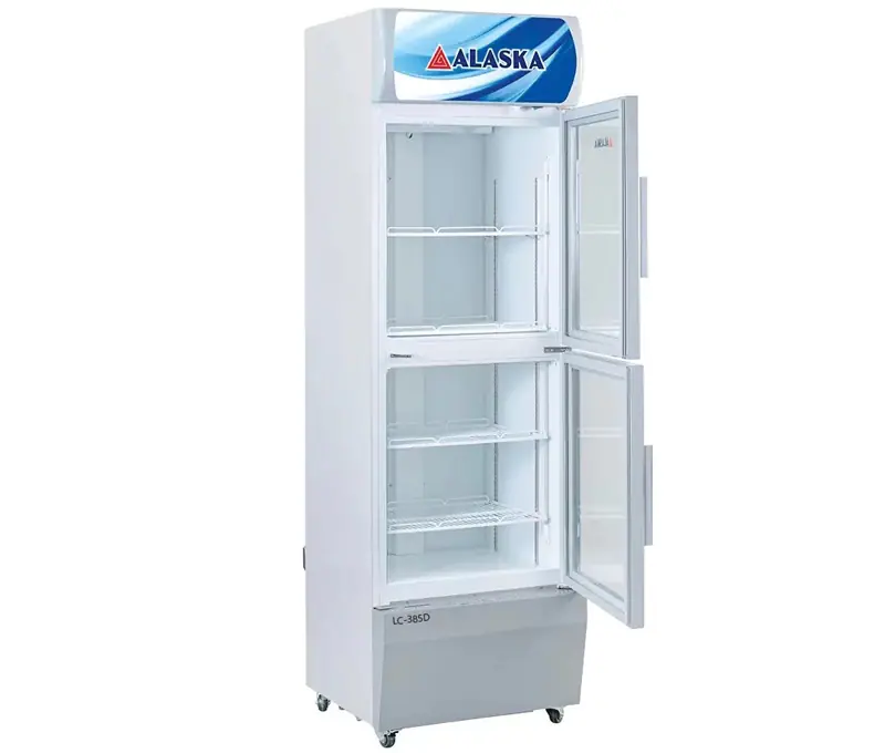 Tủ mát Alaska 382 lít LC-385D thiết kế kiểu tủ đứng 2 cánh với 1 ngăn trên dưới giúp phân bố thực phẩm thuận tiện, công nghệ làm lạnh đối lưu cưỡng bức giúp hơi mát