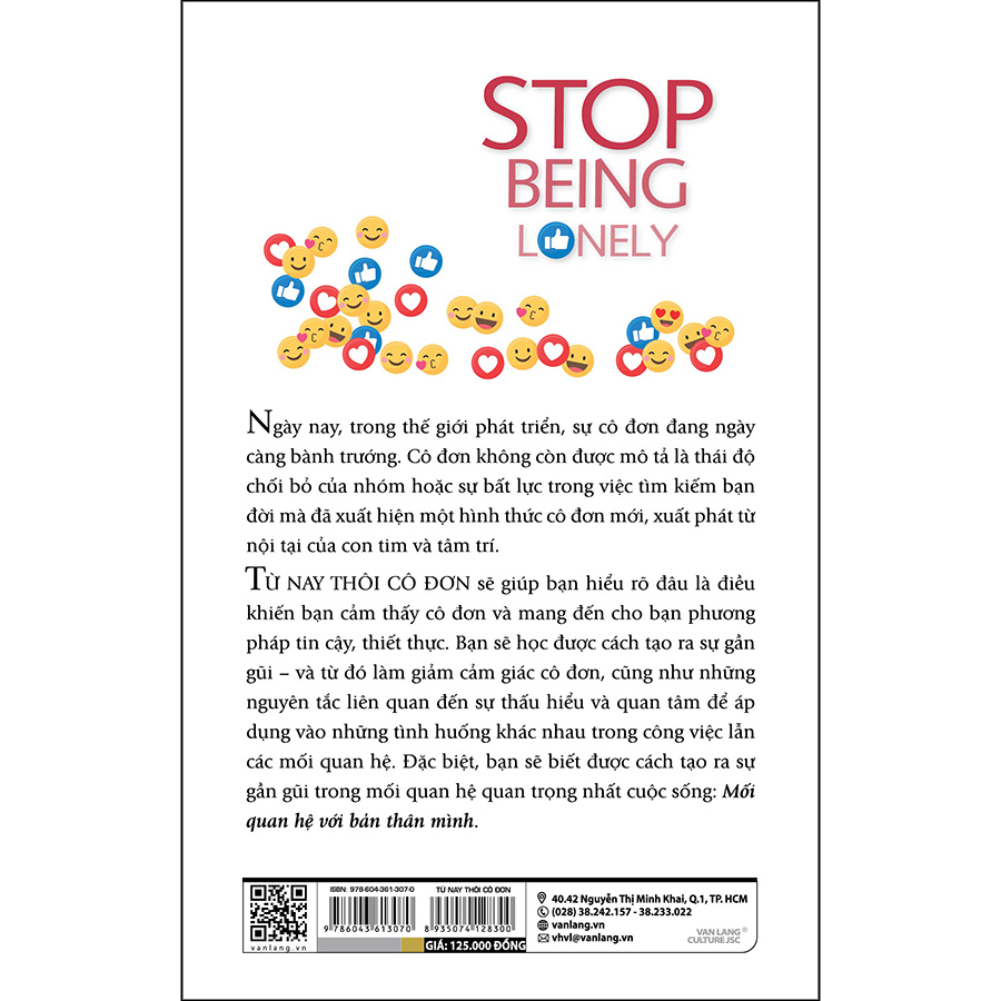 Ngày nay, trong thế giới phát triển, sự cô đơn đang ngày càng bành trướng. Cô đơn không còn được mô tả là thái độ chối bỏ của nhóm hoặc sự bất lực trong việc tìm kiếm bạn đời mà đã xuất hiện một hình thức cô đơn mới, xuất phát từ nội tại của con tim và tâm trí. TỪ NAY THÔI CÔ ĐƠN sẽ giúp bạn hiểu rõ đâu là điều khiến bạn cảm thấy cô đơn và mang đến cho bạn phương pháp tin cậy, thiết thực. Bạn sẽ học được cách tạo ra sự gần gũi – và từ đó làm giảm cảm giác cô đơn, cũng như những nguyên tắc liên quan đến sự thấu hiểu và quan tâm để áp dụng vào những tình huống khác nhau trong công việc lẫn các mối quan hệ. Đặc biệt, bạn sẽ biết được cách tạo ra sự gần gũi trong mối quan hệ quan trọng nhất cuộc sống: Mối quan hệ với bản thân mình.