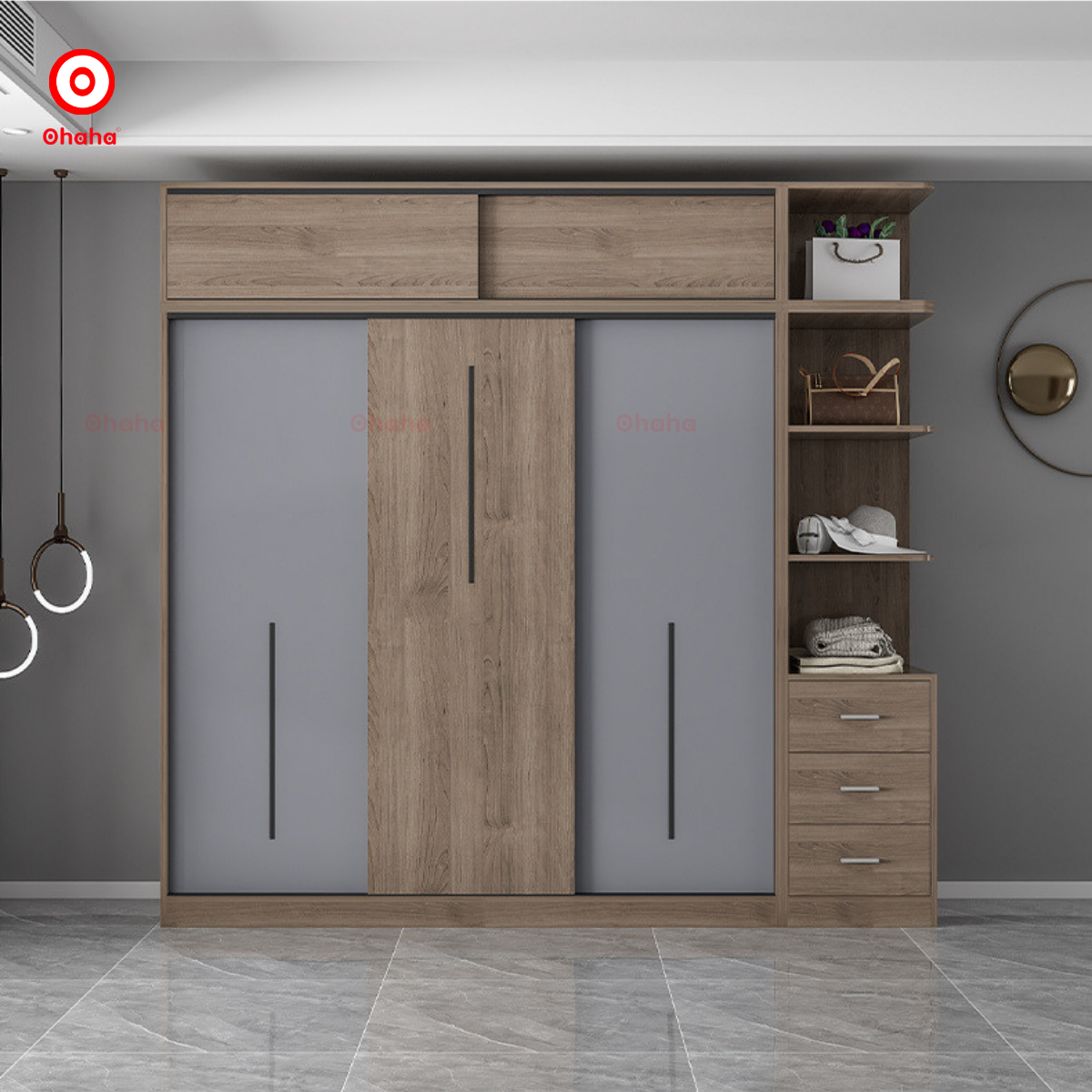 Tủ quần áo gỗ công nghiệp Ohaha ra đời với mục tiêu không chỉ là nơi lưu trữ quần áo mà còn làm đẹp cho không gian sống. Bằng thiết kế đa dạng và thông minh, sản phẩm này mang lại lợi ích và thẩm mỹ tối ưu cho người sử dụng. Với kệ đa năng và phong cách hiện đại giúp tối ưu hóa diện tích phòng ngủ và bảo quản quần áo hàng ngày một cách hiệu quả.