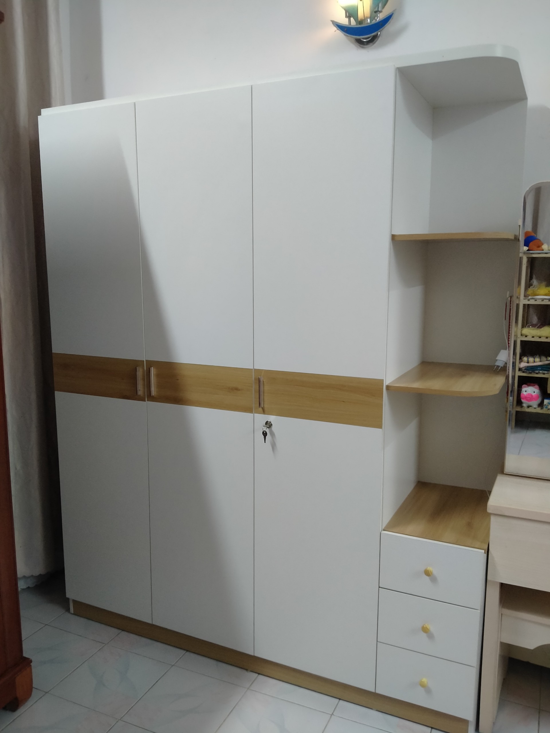 Thông tin sản phẩm: - Kích thước: Cao 200cm - Rộng 55cm - Ngang 160cm và 180cm - Chất liệu: An toàn và thân thiện với trẻ nhỏ. Gỗ MDF được xử lý chống cong vênh,