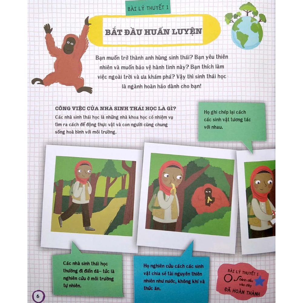 Cuối mỗi cuốn sách đều có các nhiệm vụ đơn giản để thực hành, trải nghiệm, kiểm tra kỹ năng và củng cố thông tin trong khi bạn khám phá các loại công việc sinh thái khác nhau và học cách suy nghĩ như một anh hùng sinh thái.