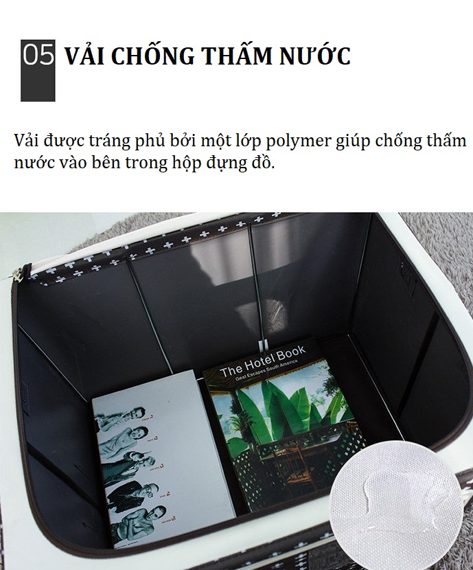 – Bên ngoài tủ là lớp vải bọc bằng sợi Polyester chắc chắn, có khả năng chống bụi, ẩm mốc và đặc biệt là chống thấm nước.